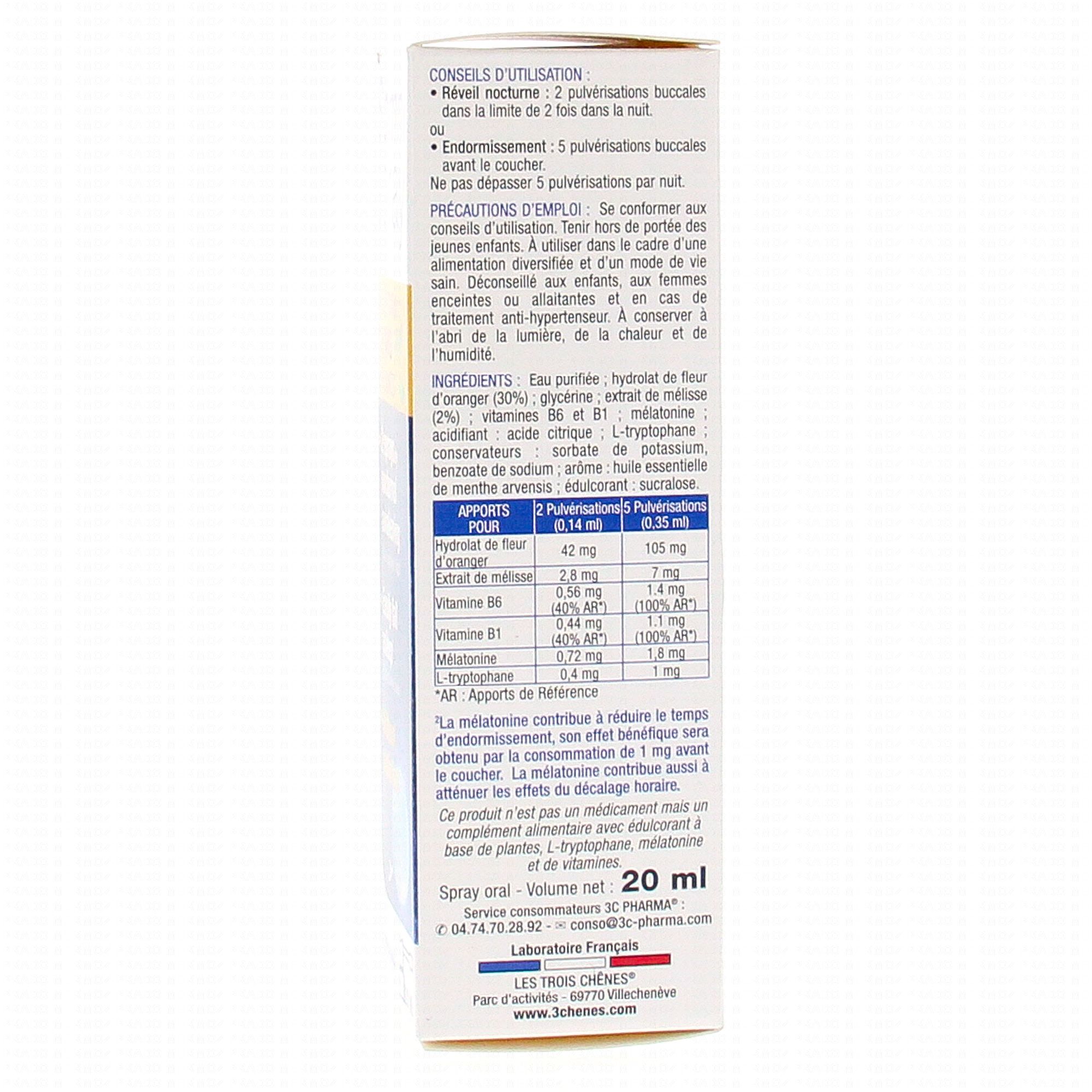 Joue un rôle au niveau des réveils nocturnes ainsi que de l'endormissement. Il contient notamment 1,8 milligramme de mélatonine pour 5 pulvérisations.