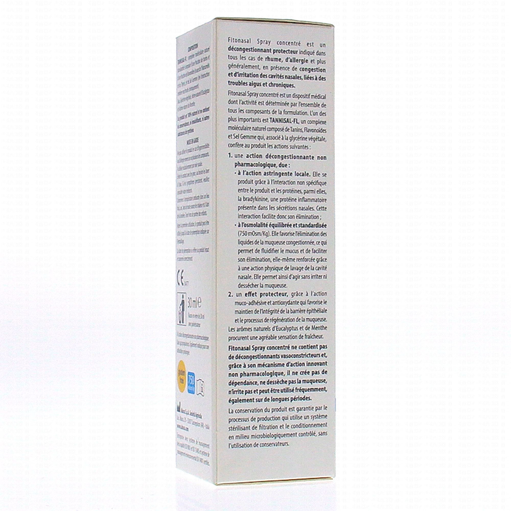 Fitonasal Spray concentré est un décongestionnant protecteur indiqué dans le cas de rhume, d'allergie et plus généralement, en présence de congestion et d'irritation des cavités nasales, liées à des troubles aigus et chroniques. Fitonasal Spray concentré est un produit dont l'activité est déterminée par l'ensemble de tous les composants de la formulation.