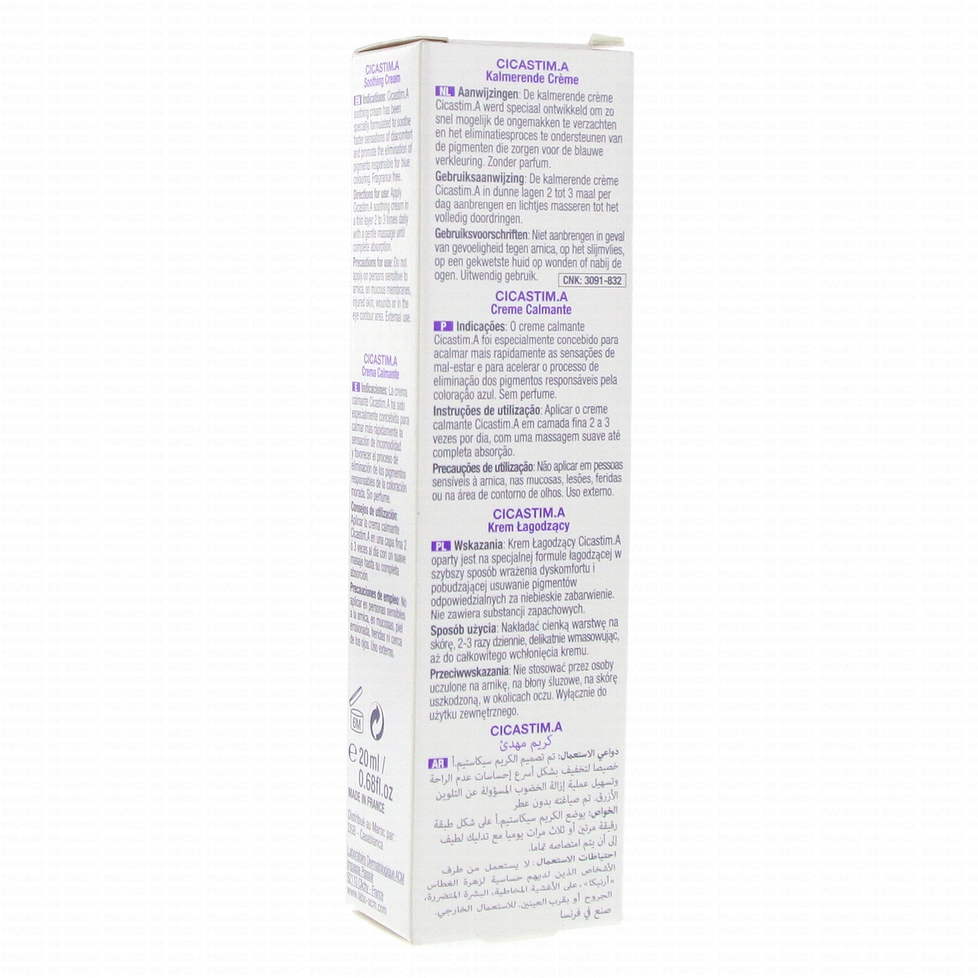 Laboratoire ACM Cicastim.A Crème Apaisante 20 ml est un soin qui apaise les sensations d'inconfort de la peau. Elle favorise l'élimination des pigments responsables de la coloration bleue suite à des chocs ou des coups. Elle s'utilise également en prévention ou après une intervention esthétique ou chirurgicale.