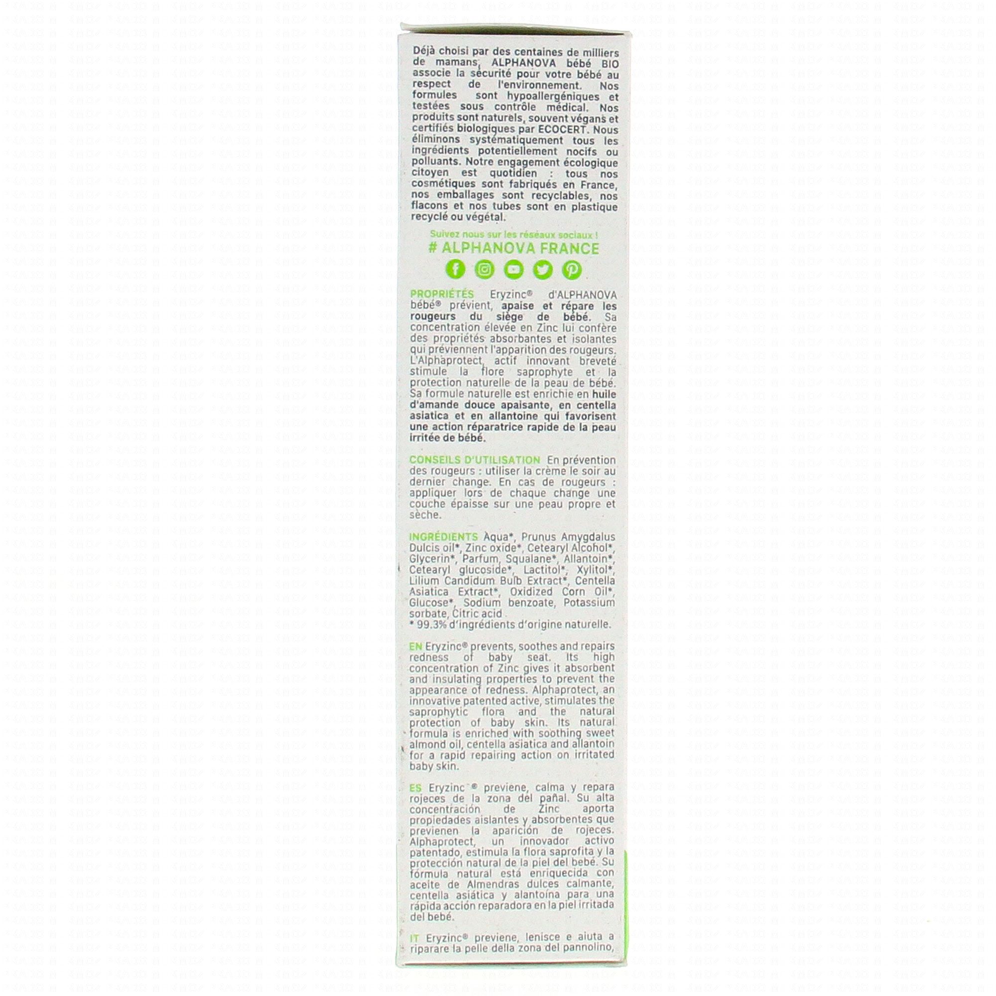 ALPHANOVA Bébé - Eryzinc Crème de change tube 75g