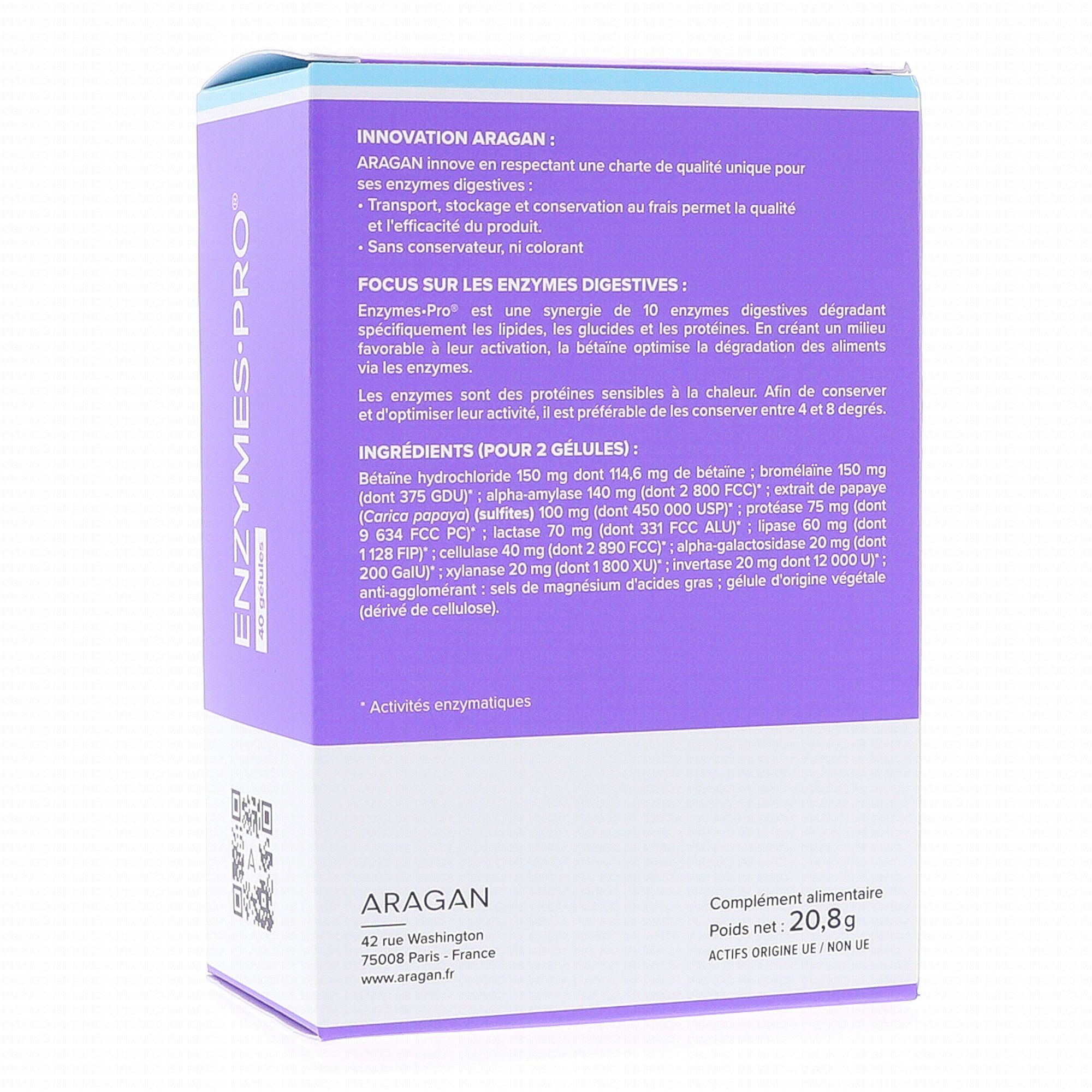 ARAGAN Enzymes Pro x40 gélules contient les éléments suivants :