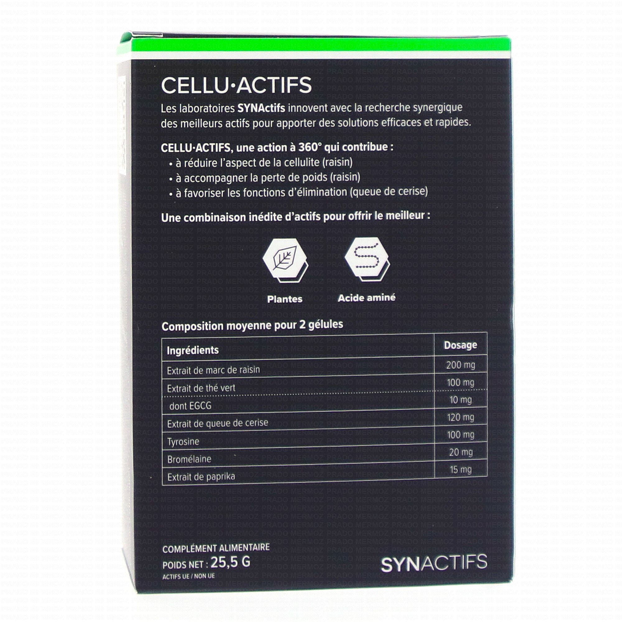 En stockPrendre 1 à 2 gélules de Synactifs Cellu Actifs Cellulite par jour.