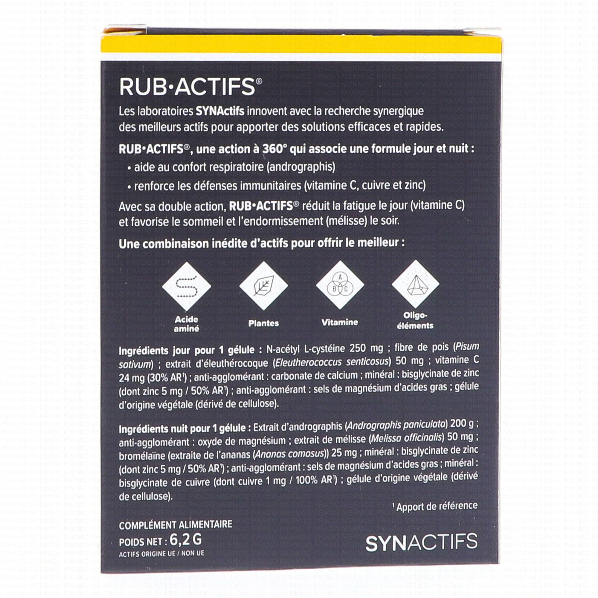 SYNACTIFS Rub Actifs Jour/Nuit 2x6 gélules contient les éléments suivants :