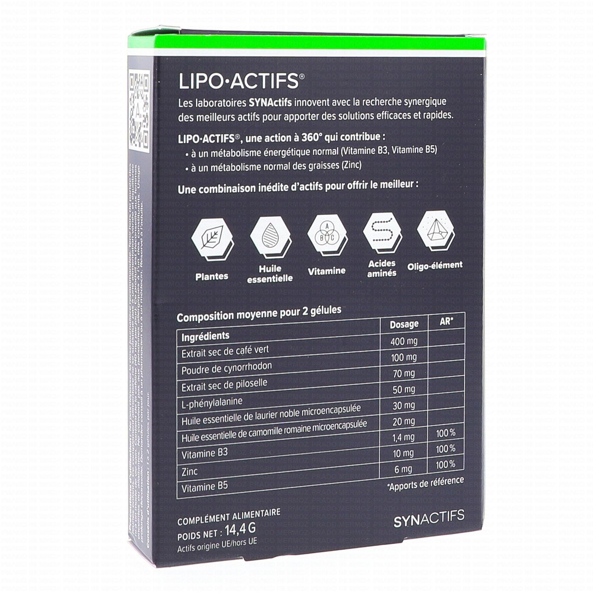 Ingrédients : complexe breveté Svetol : extrait sec de grain de café vert décaféiné (coffea robusta) 6-9/1 ; extrait sec de feuille d'orthosiphon (orthosiphon aristatus) 4/1 ; extrait sec de plante entière de piloselle (hieracium pilosella) 2-4/1 ; L-phénylalanine; huile essentielle de feuille de laurier noble (laurus nobilis) microencapsulée ; huile essentielle de plante entière de camomille romaine (arthemis nobilis) microencapsulé ; vitamine B3 ; antiagglomérants : stéarate de magnésium, carbonate de magnésium ; oxyde de zinc ; vitamine B5 ; gélule : hypromellose.