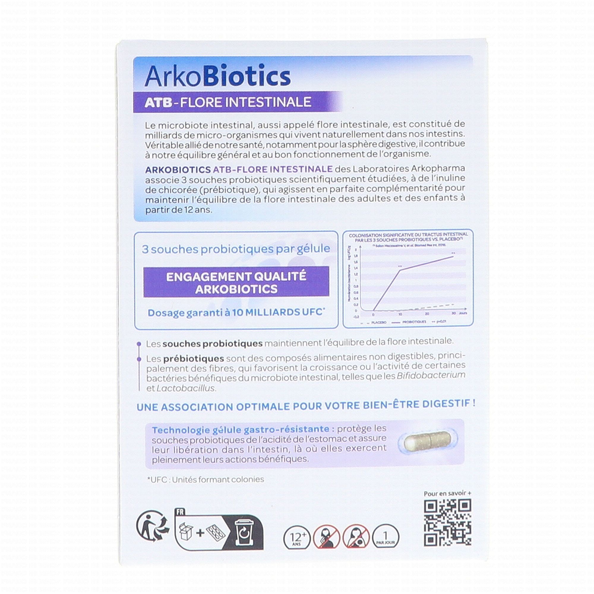 ARKOPHARMA Arkobiotics ATB Flore Intestinale 30 jours contient les éléments suivants :