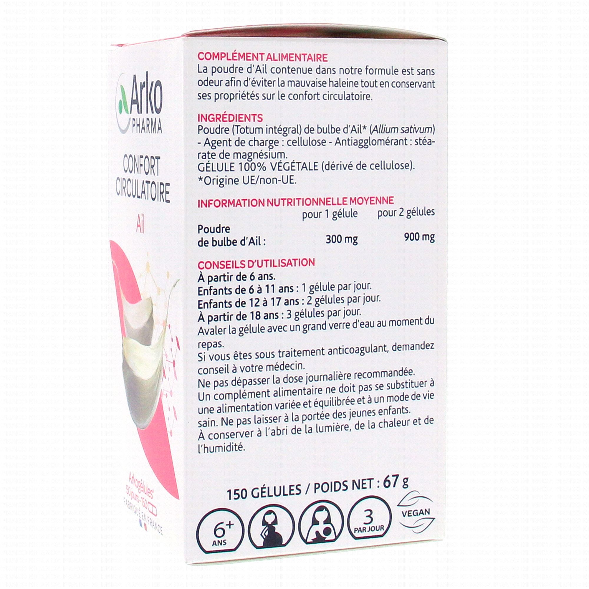 ARKOPHARMA Arkogélules inod'ail flacon de 150 gélules est un complément alimentaire qui participe à la circulation du sang dans les microvaisseaux.