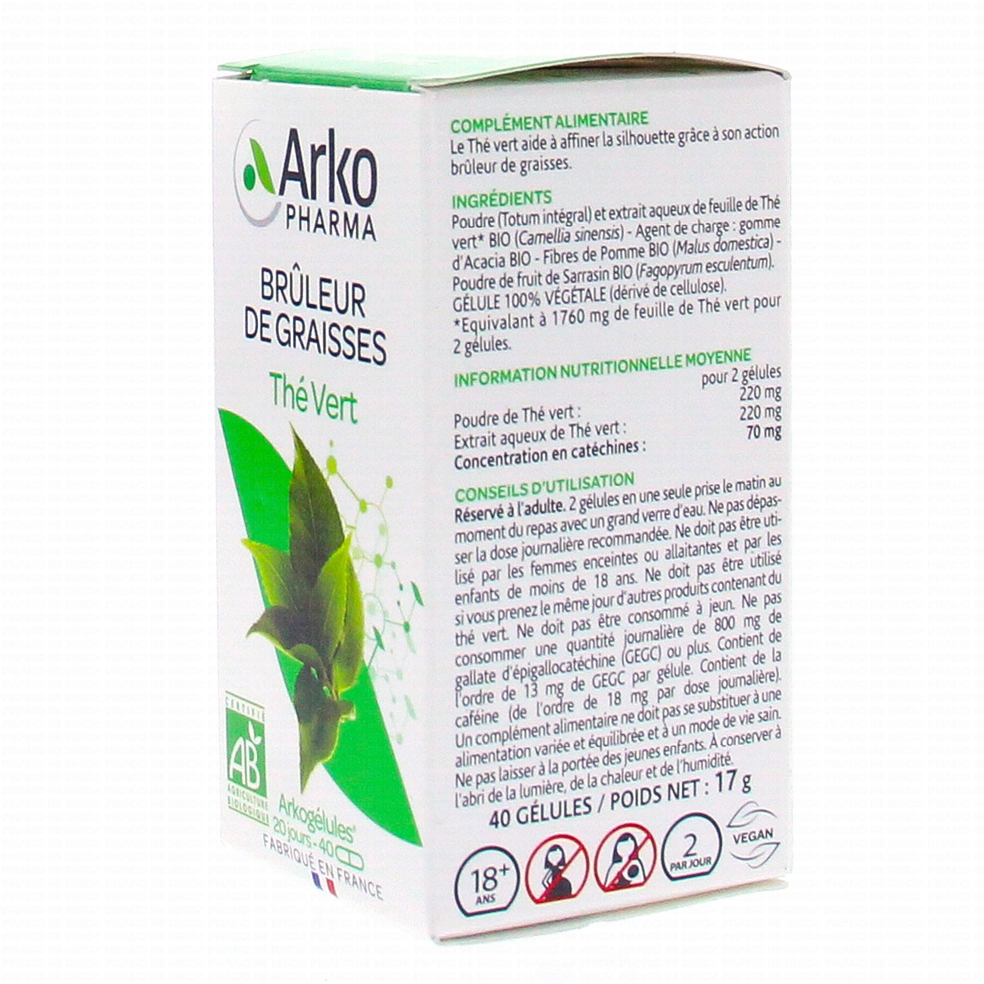 ARKOPHARMA Thé vert bio 40 gélules contient les éléments suivants :