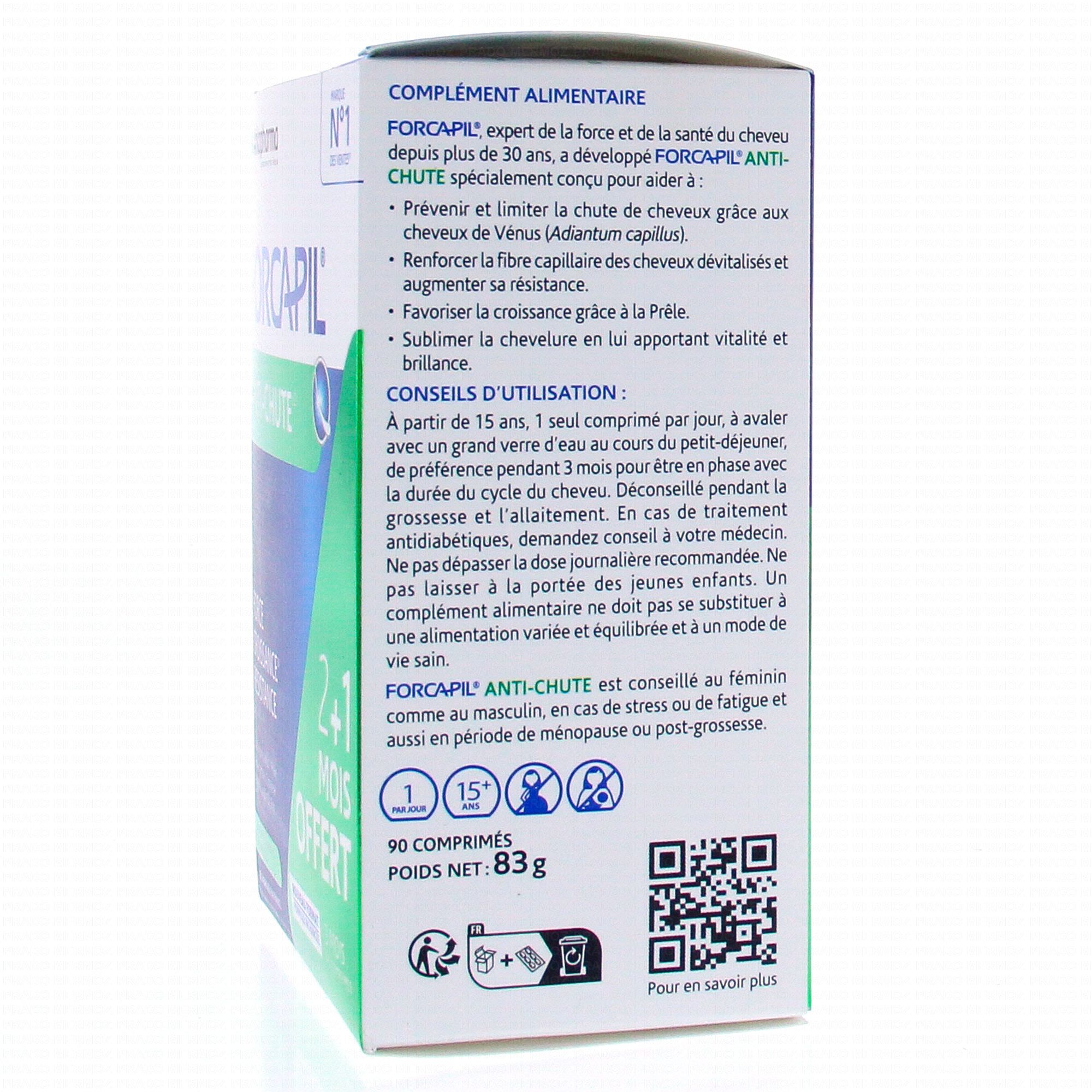 ARKOPHARMA Forcapil Anti-chute 90 comprimés est un complément alimentaire qui contribue à la santé des cheveux et des ongles en stabilisant la structure des protéines grâce à la présence de Cystine. La Silice contenue dans la Prêle favorise la santé des phanères. Le Cuivre et le Zinc aident au maintien de cheveux normaux.