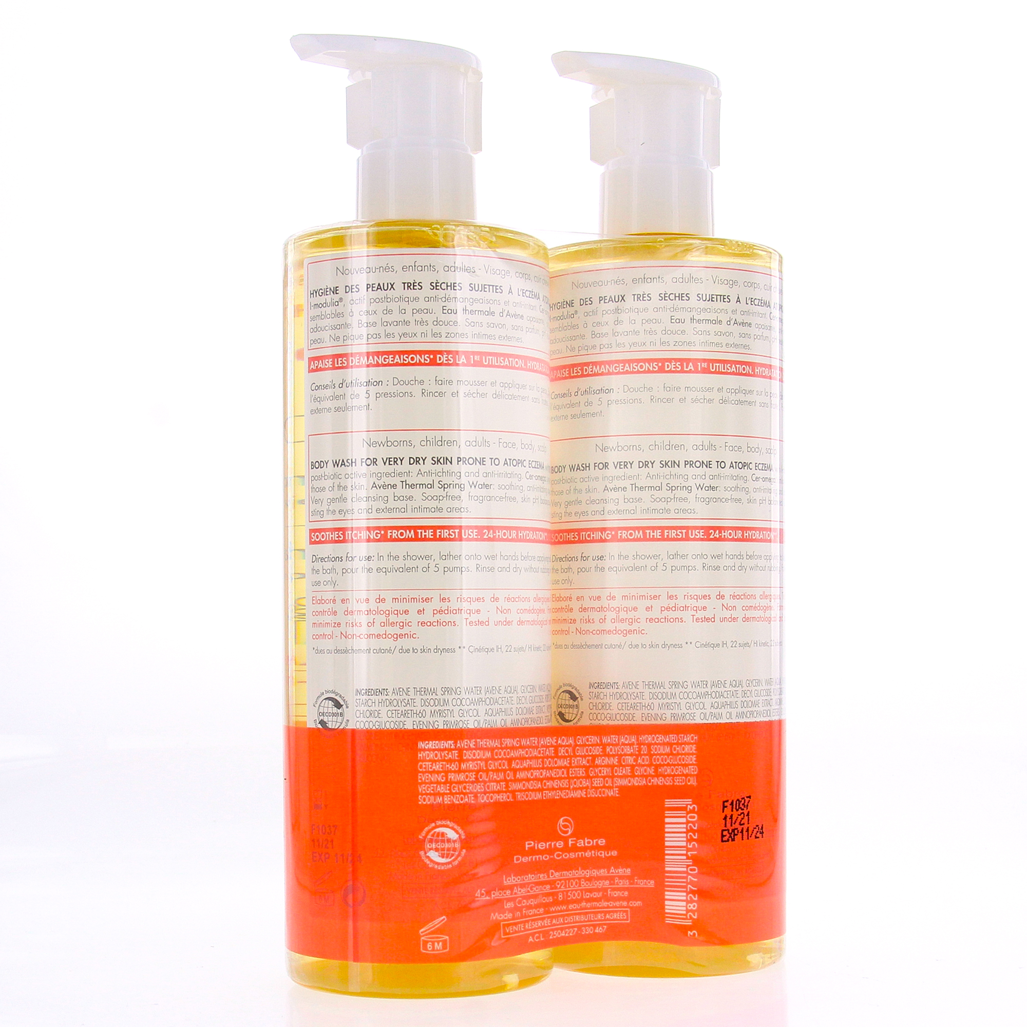 Spécialement formulée pour les personnes ayant la peaux très sèches, atopique et sensible, l'huile lavante relipidante se compose d'un complexe I-modulia qui permet de diminuer les démangeaisons dues à la sécheresse de la peau, des Cer-Oméga qui nourrissent et réparent l'épiderme, ainsi que de l'eau thermale d'Avène aux propriétés apaisantes.