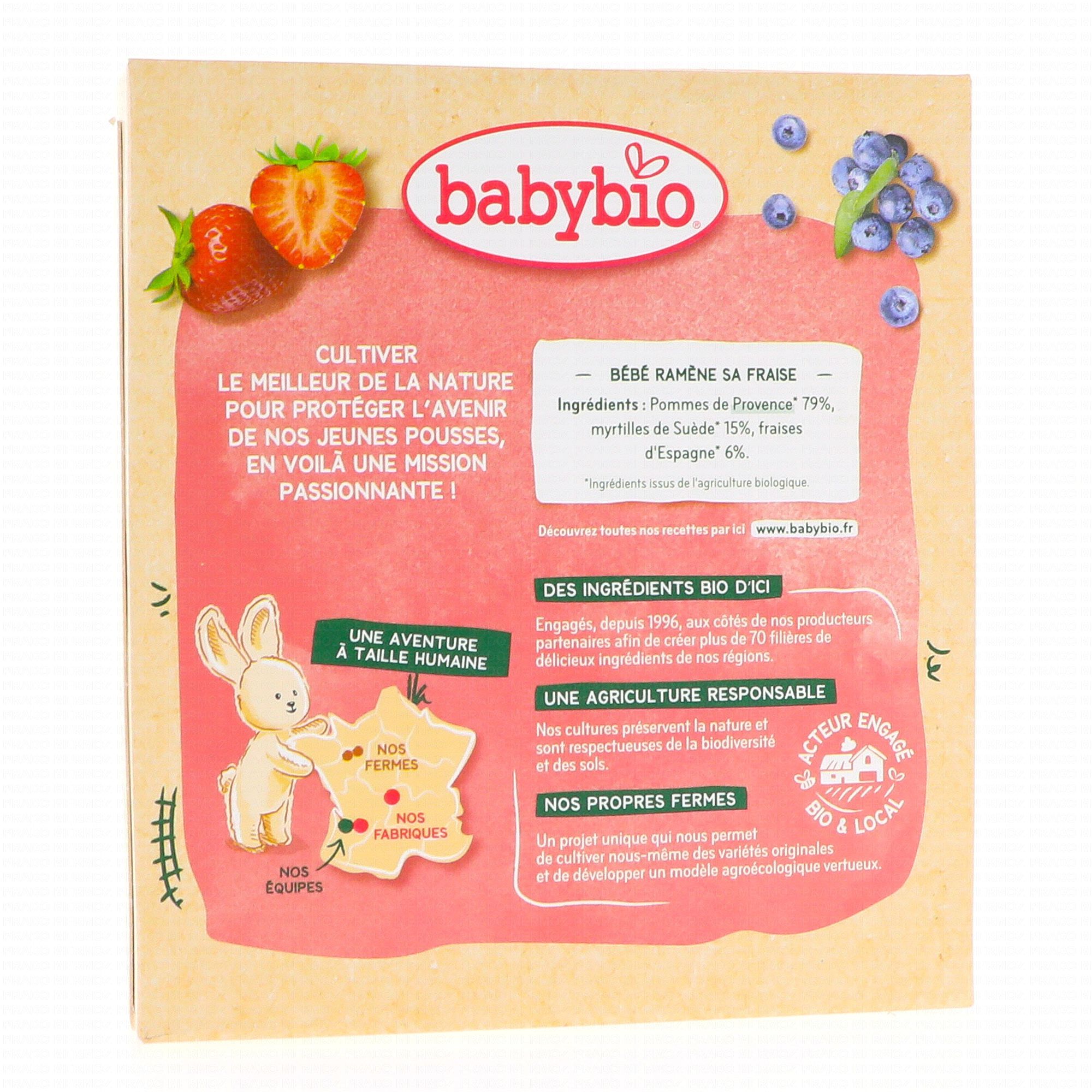 BABYBIO Fruits - Gourdes pomme, myrtille, fraise dès 6 mois 4x90g