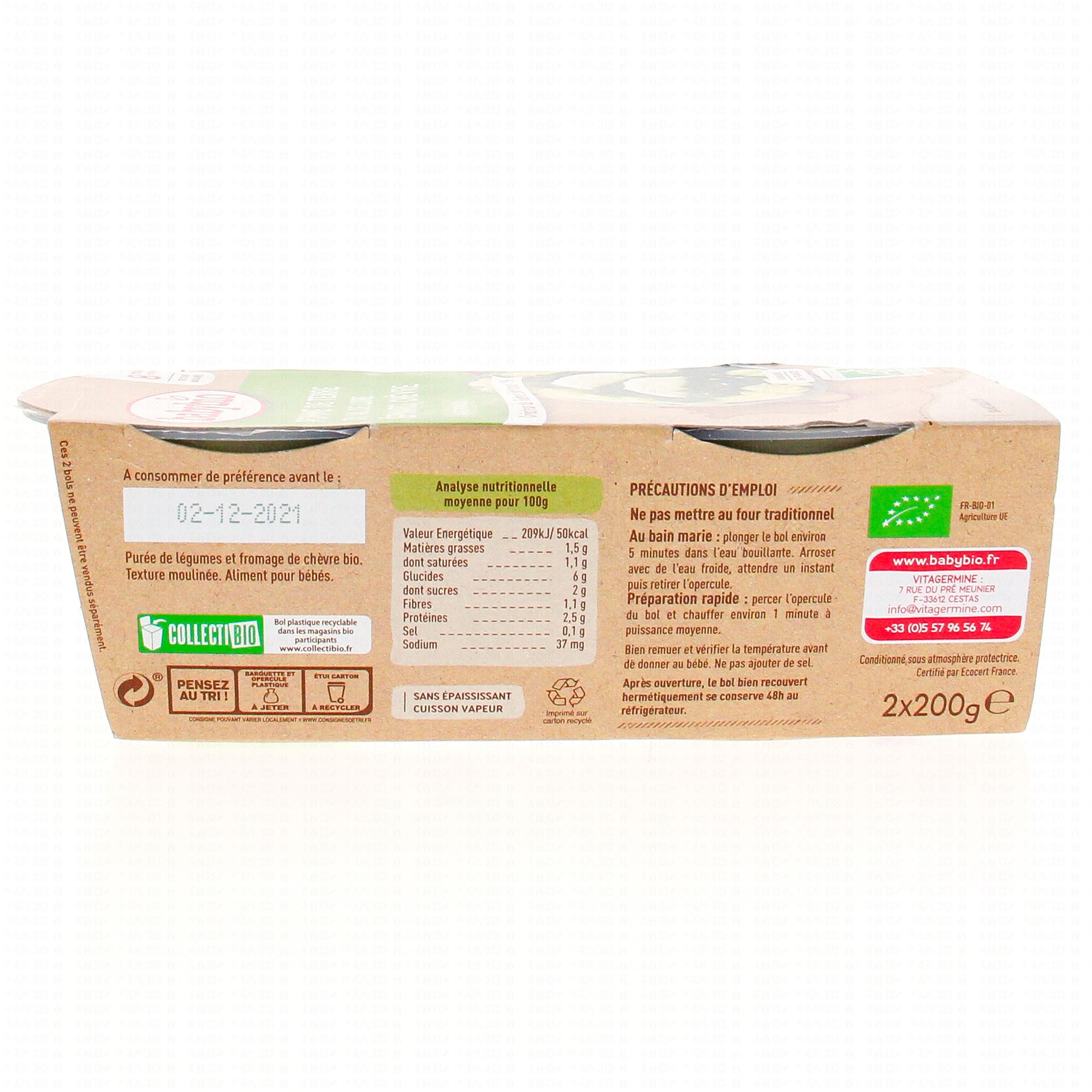 BABYBIO Légumes - Trio de Pomme de terre du val de Loire , épinard, chèvre pot 200g x 2