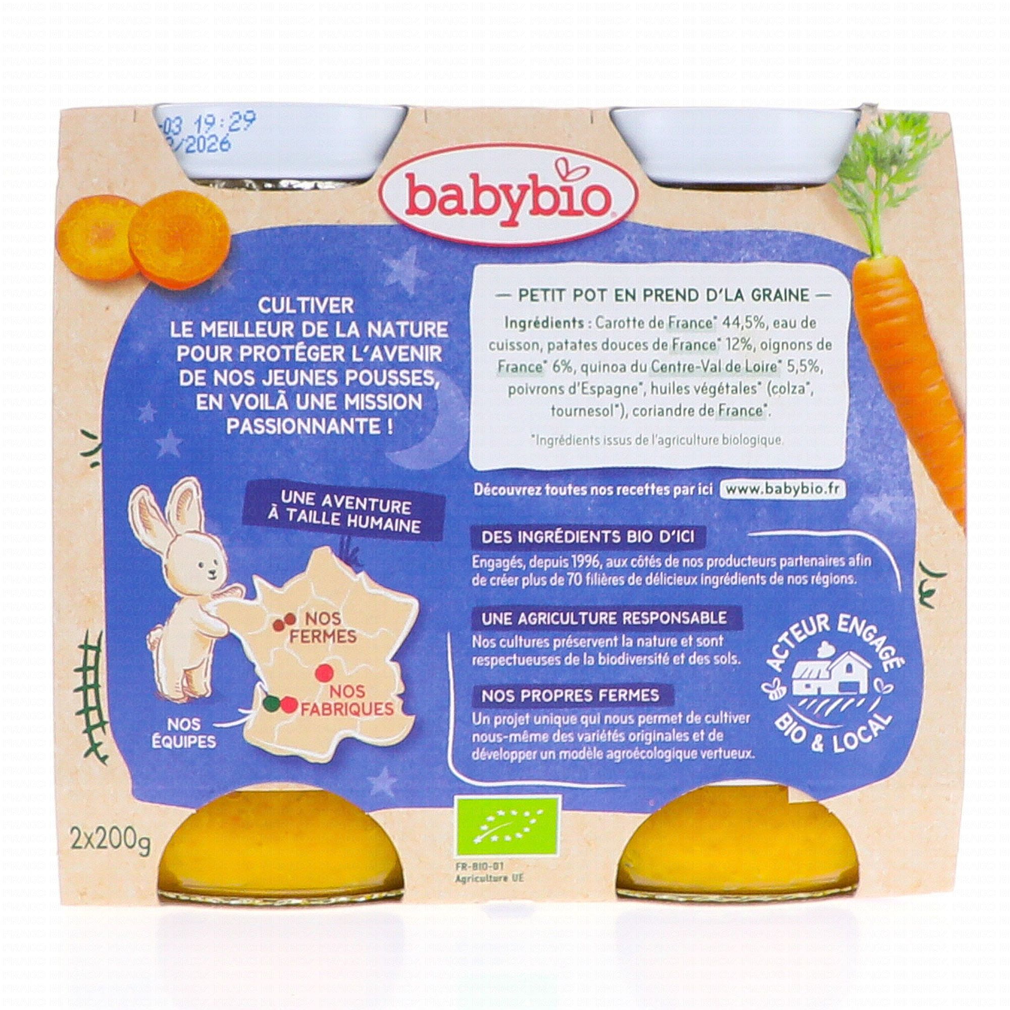 BABYBIO Repas du Soir - Petits pots mouliné de carotte des Landes, quinoa dès 8 mois 2x200g - Illustration n°2