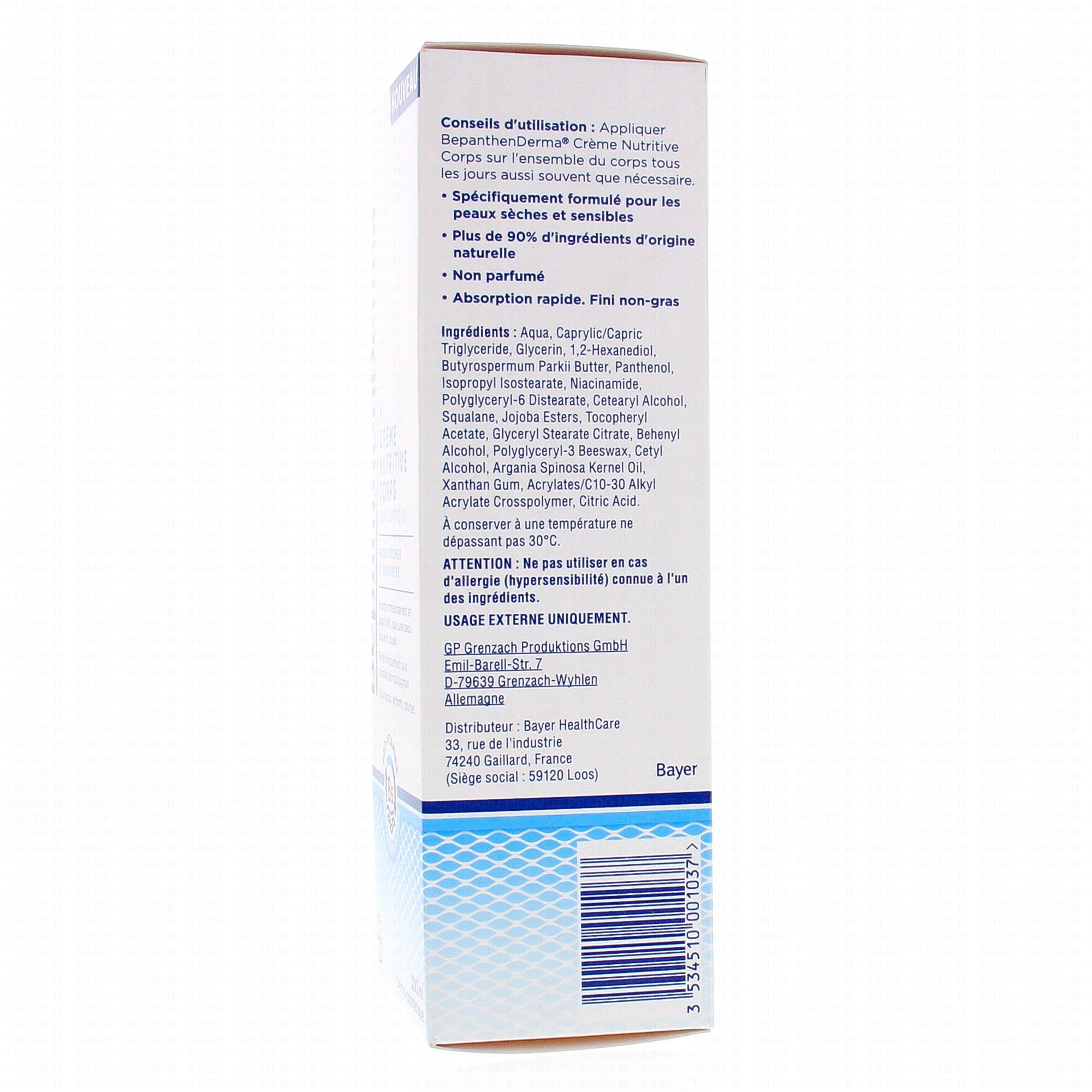 Bepanthen Derma Crème Nutritive Corps agit à l'origine de la sécheresse cutanée. Hydrate immédiatement et jusqu'à 48h, pour une peau douce et souple.