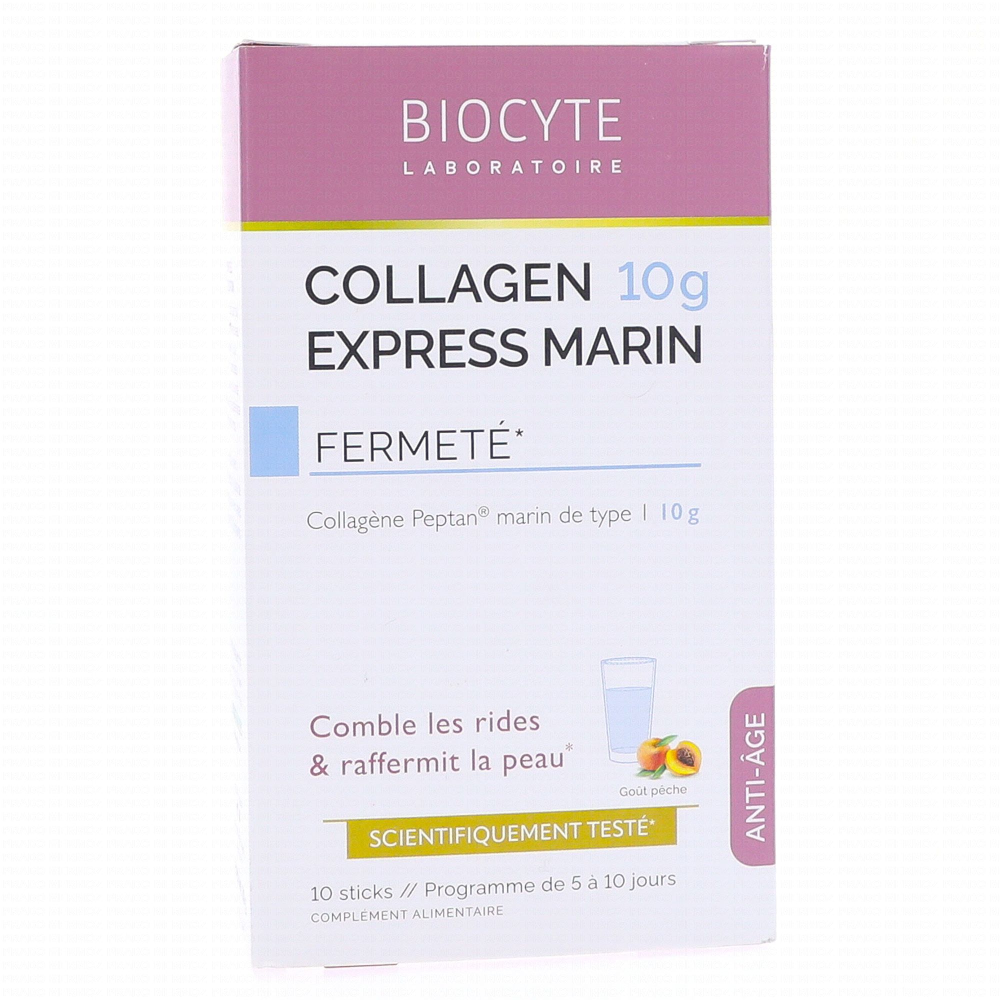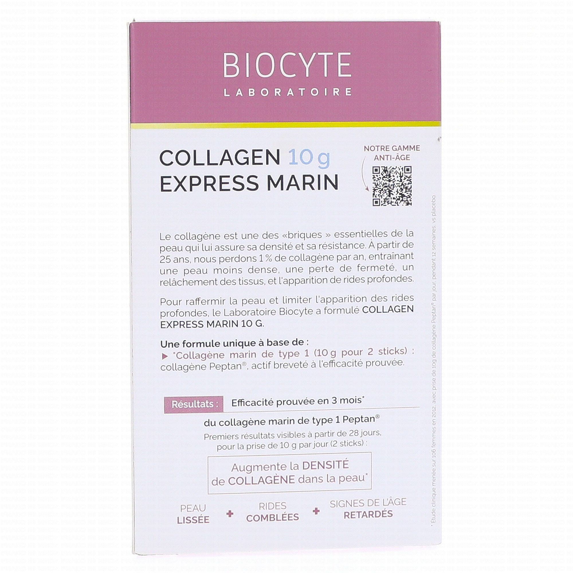 BIOCYTE Collagen express boîte 10 sticks 6g contient les éléments suivants :