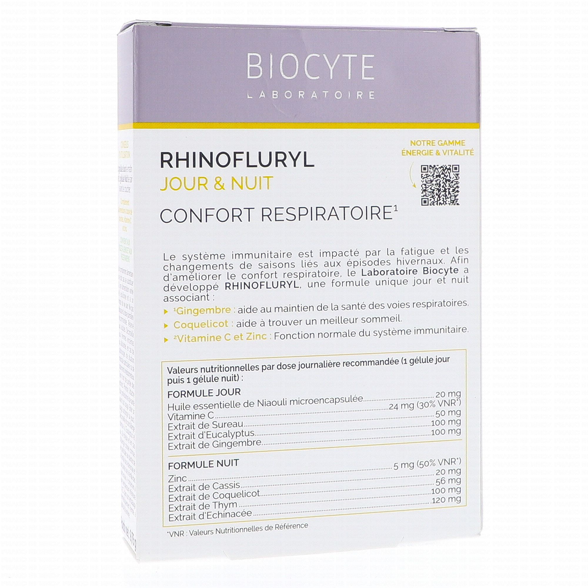 BIOCYTE Rhinofluryl Confort Repsiratoire jour/nuit x20 contient les éléments suivants :