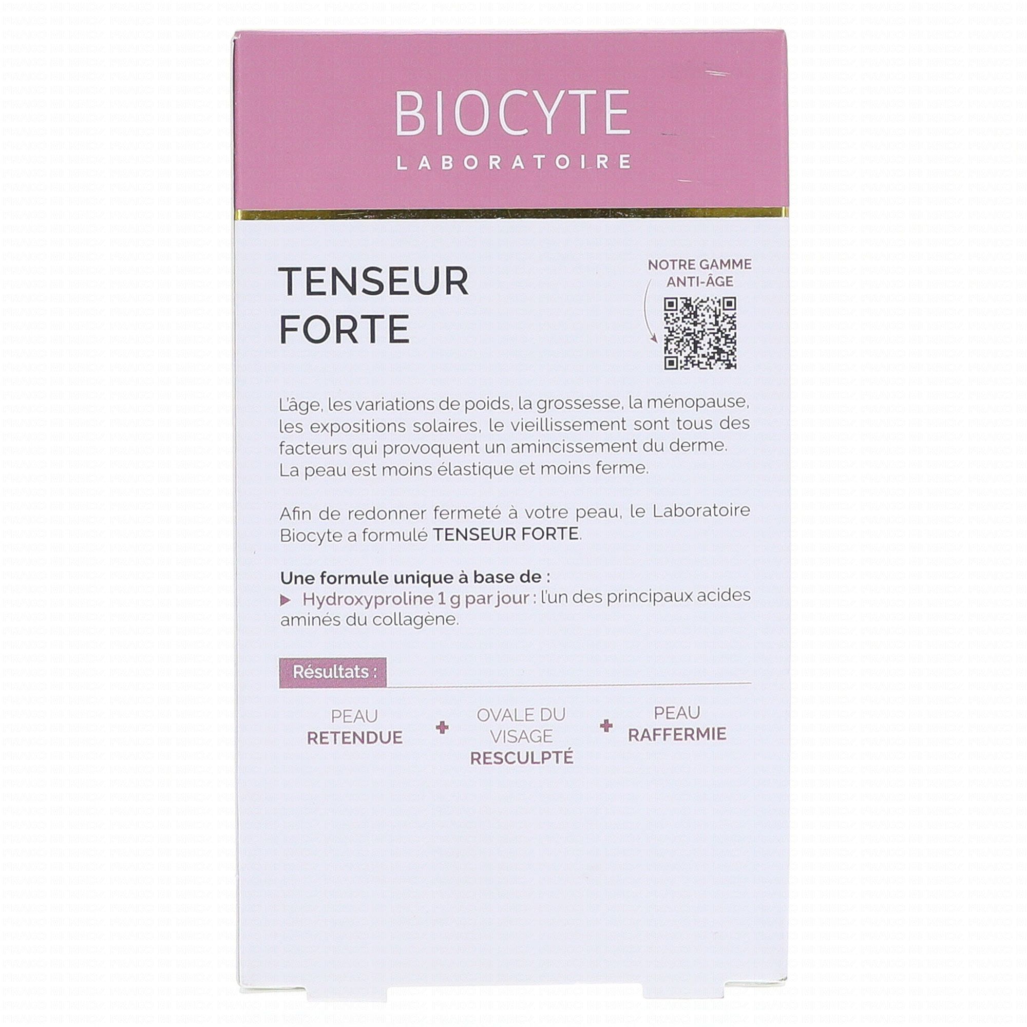 BIOCYTE Tenseur forte 40 gélules est un complément alimentaire qui contient de la L-hydroxyproline qui est un acide aminé