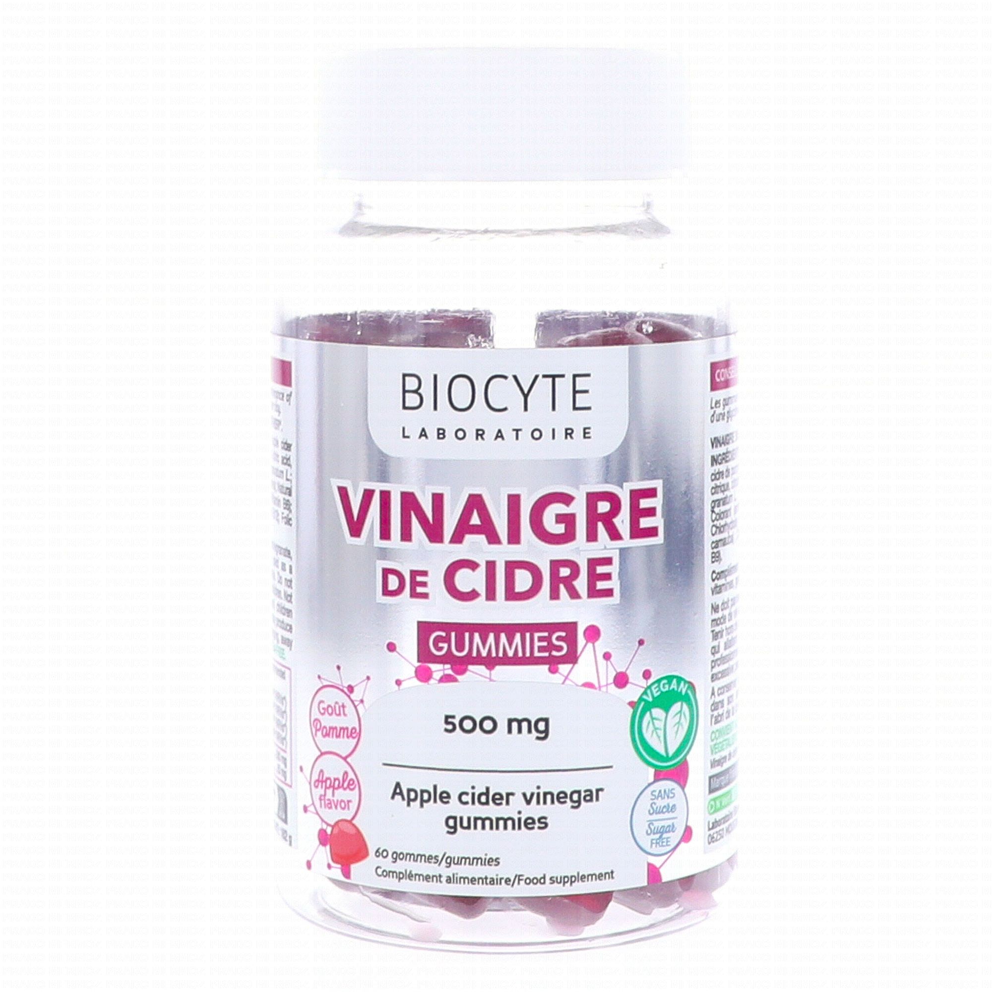 En stockBIOCYTE Vinaigre de cidre est un complément alimentaire sous forme de gummies à base de vinaigre de cidre. il contient également du chrome qui contribue au maintien d'une glycémie normale, ainsi que des vitamines B6, B9 et B12 qui contribuent à réduire la fatigue.