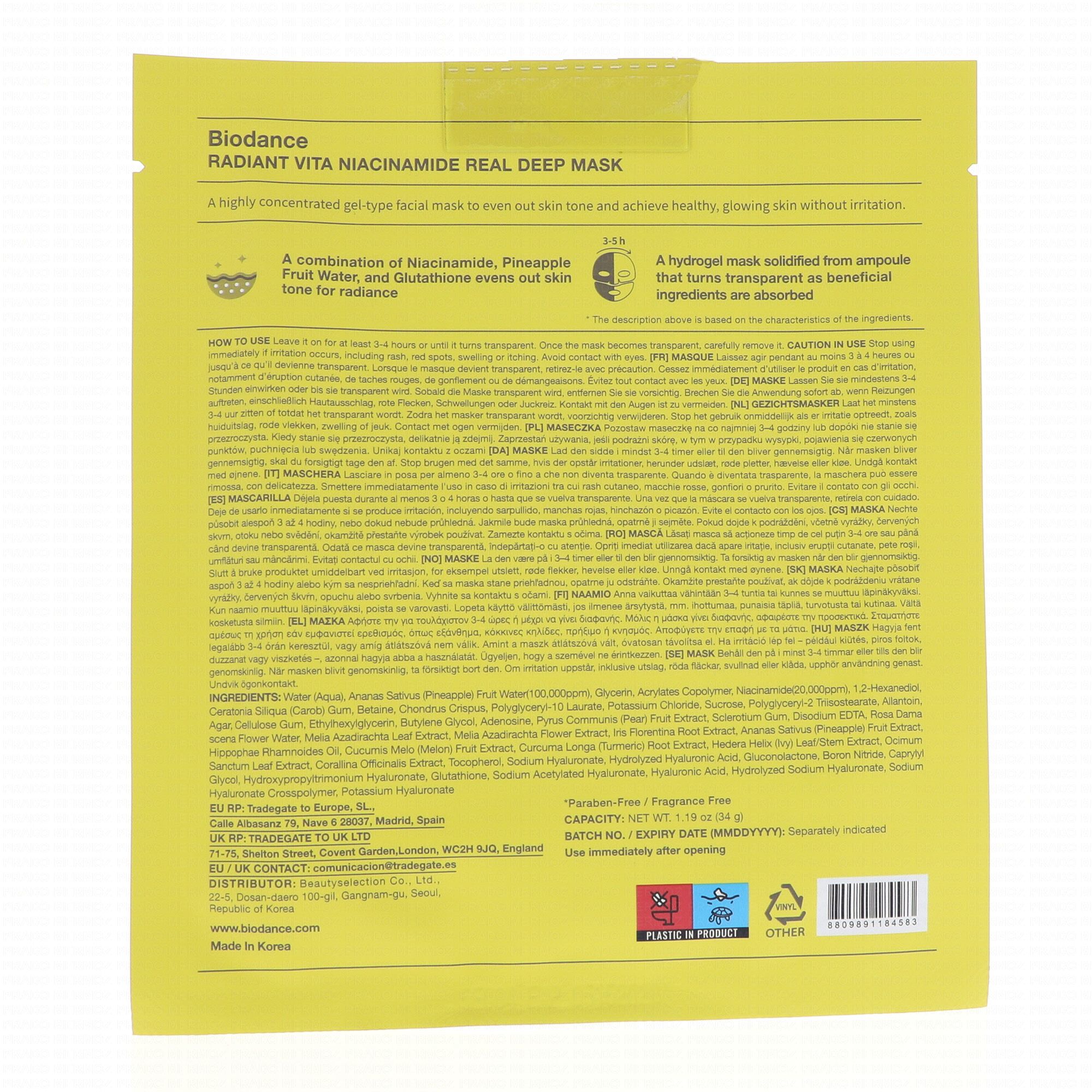 BIODANCE Masque Radiant Vita Niacinamide Illuminateur Unifiant 34g