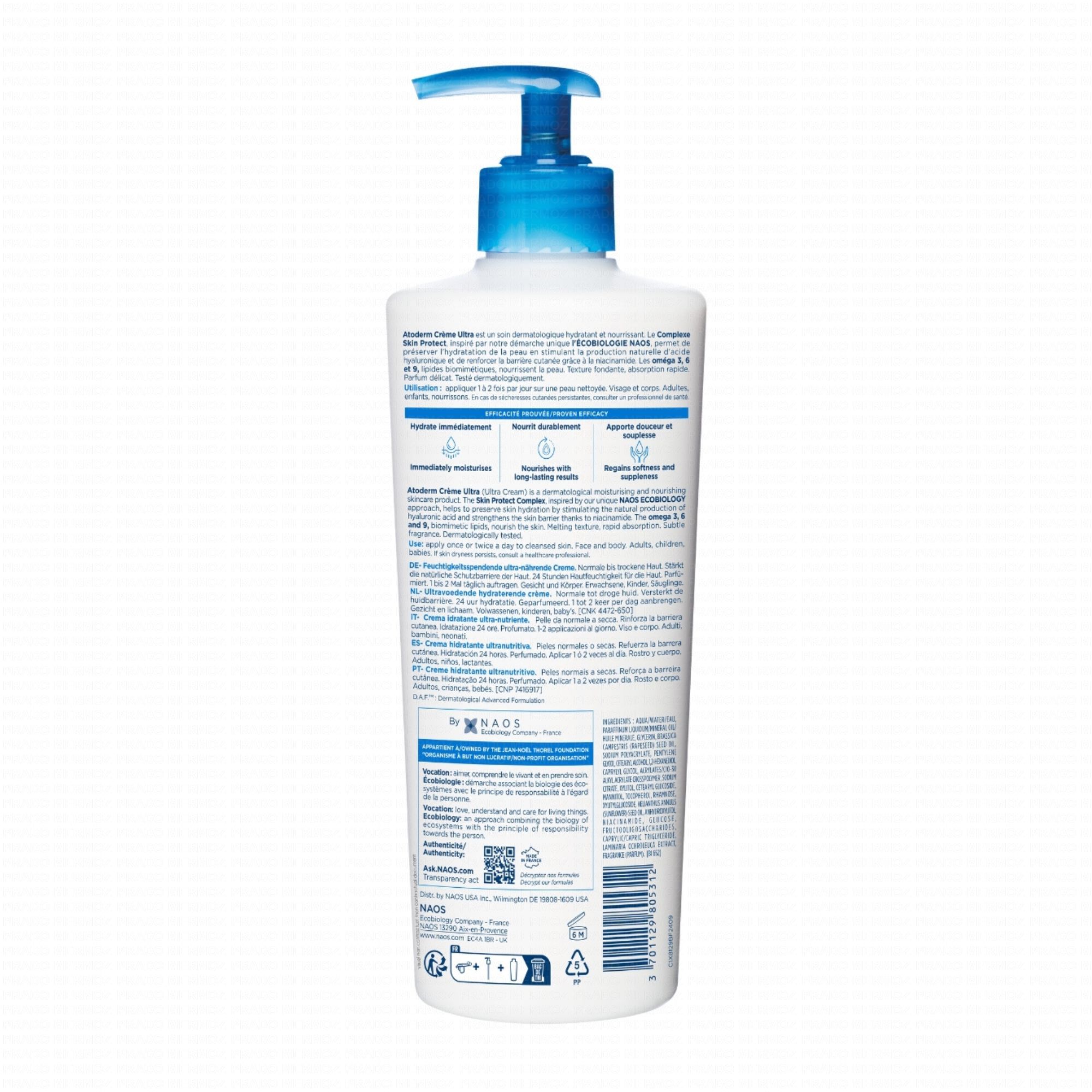 BIODERMA Atoderm - Crème Ultra Parfumée nourrissante hydratante flacon pompe 500ml