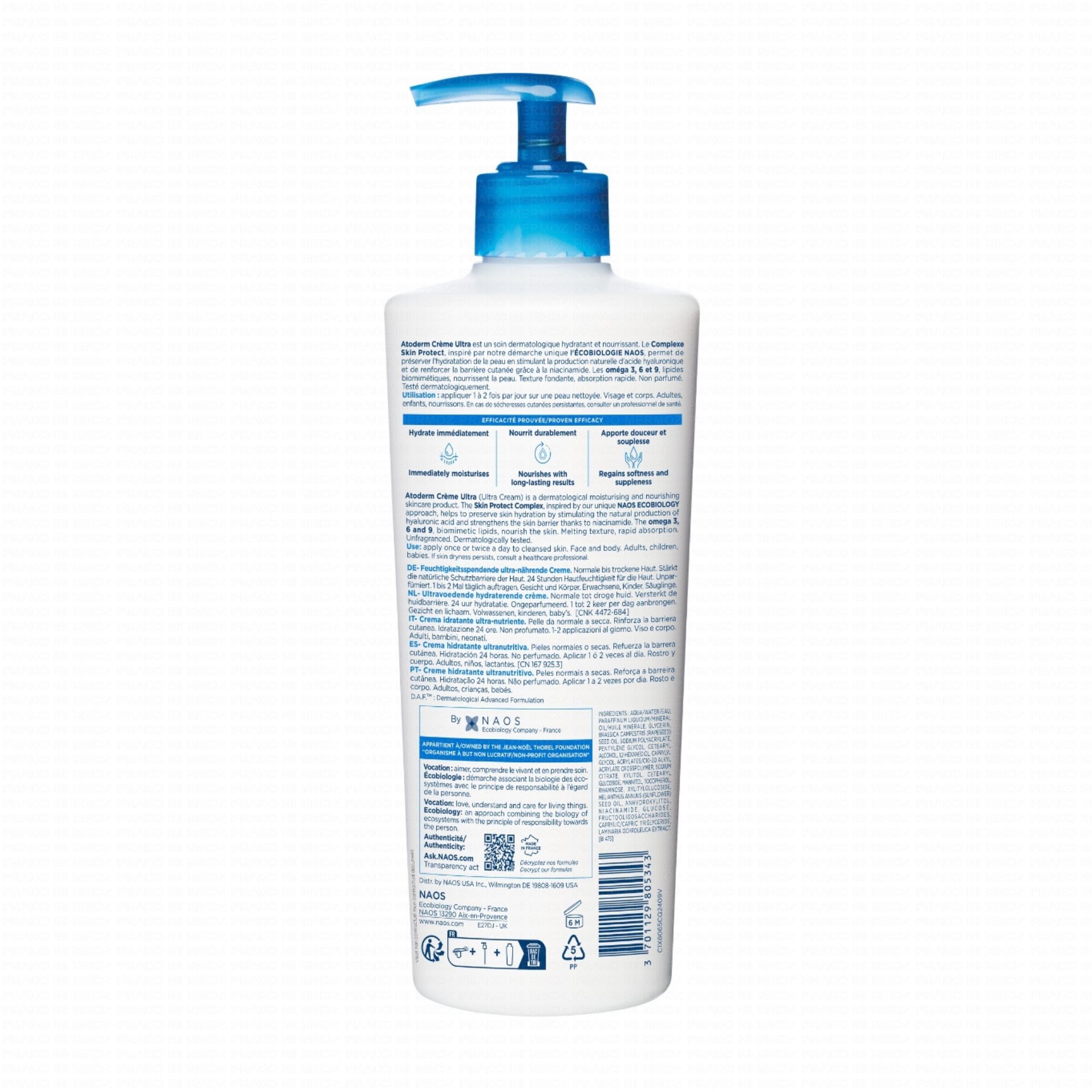 Grâce à son Complexe Skin Protect, Atoderm Crème Ultra stimule la production naturelle d'acide hyaluronique, maintenant ainsi une hydratation constante de la peau.