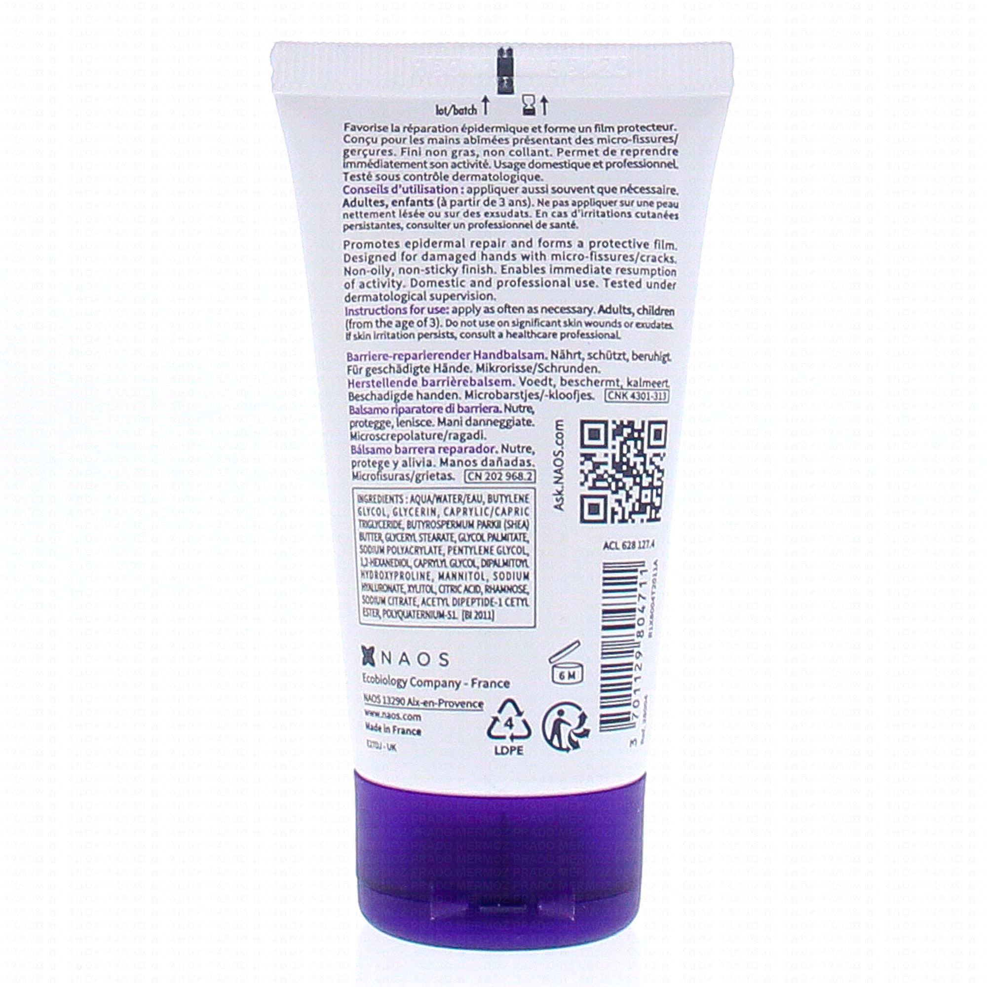 Ce baume pour les mains offre une texture effet seconde peau non collante et non grasse, qui apaise immédiatement les sensations d'inconfort et offre une protection de 8 heures.