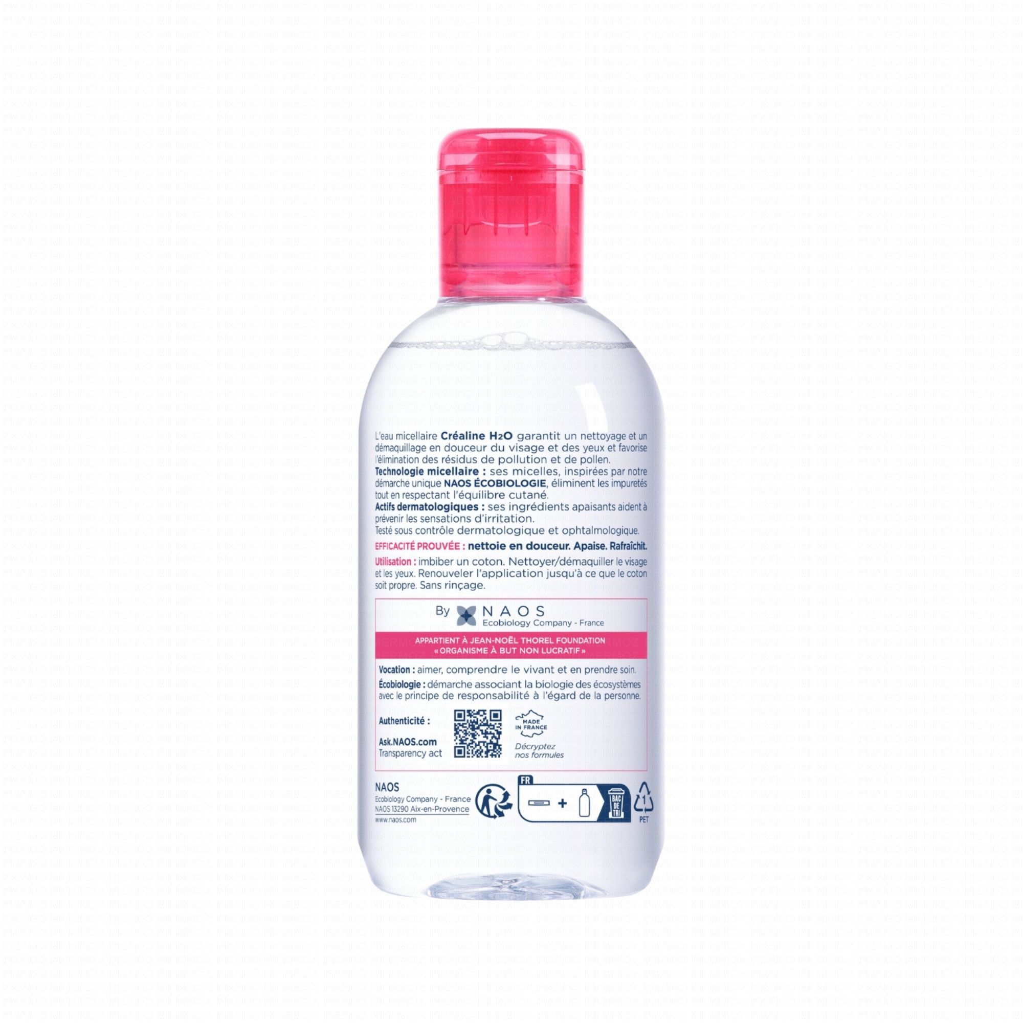 Créaline H2O est une eau micellaire nettoyante et démaquillante, spécialement formulée pour les peaux sensibles.