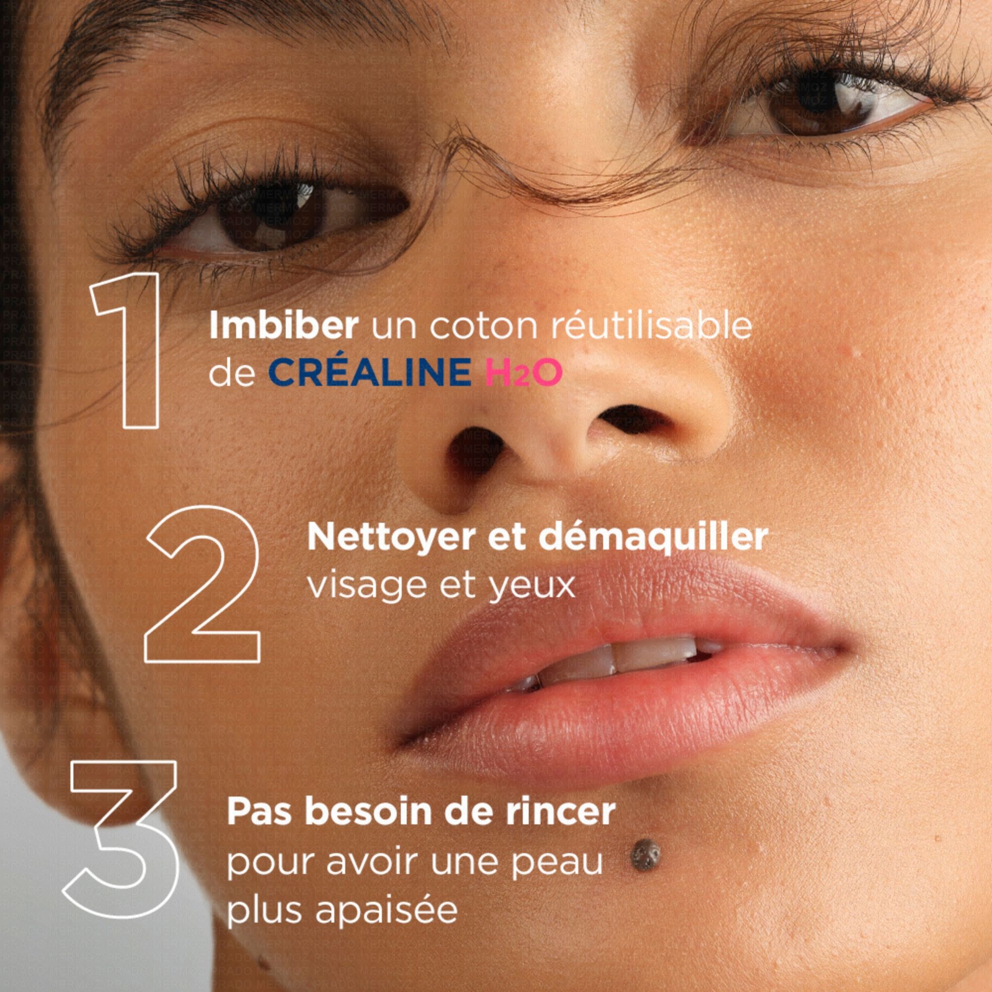 Imprégnez un coton réutilisable de Bioderma Créaline H2O matin et/ou soir, tous les jours de la semaine.