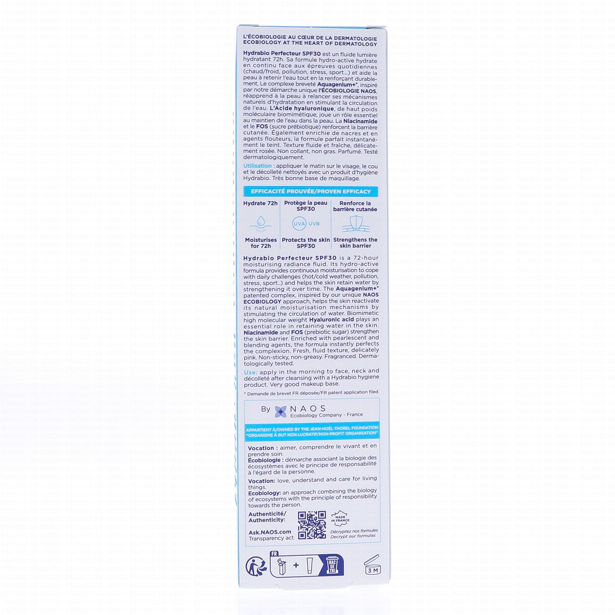 Hydrabio Perfecteur SPF30 est un soin dermatologique spécialement conçu pour les peaux normales à déshydratées. Ce soin apaisant et hydratant de 40 ml agit contre le vieillissement cutané, lisse la peau et illumine le teint tout en offrant une protection solaire pour le visage et le cou. Il apporte une solution aux peaux déshydratées en agissant contre les imperfections et les micro-rides et en apportant une hydratation intense et durable. Il offre une texture délicate et fondante, laissant la peau lisse, soyeuse et rayonnante. Mixant poudre soft focus et nacres, son action immédiate comble les micro-ridules et floute les petits défauts pour un teint plus uniforme et plus lumineux. Un véritable coup d'éclat !