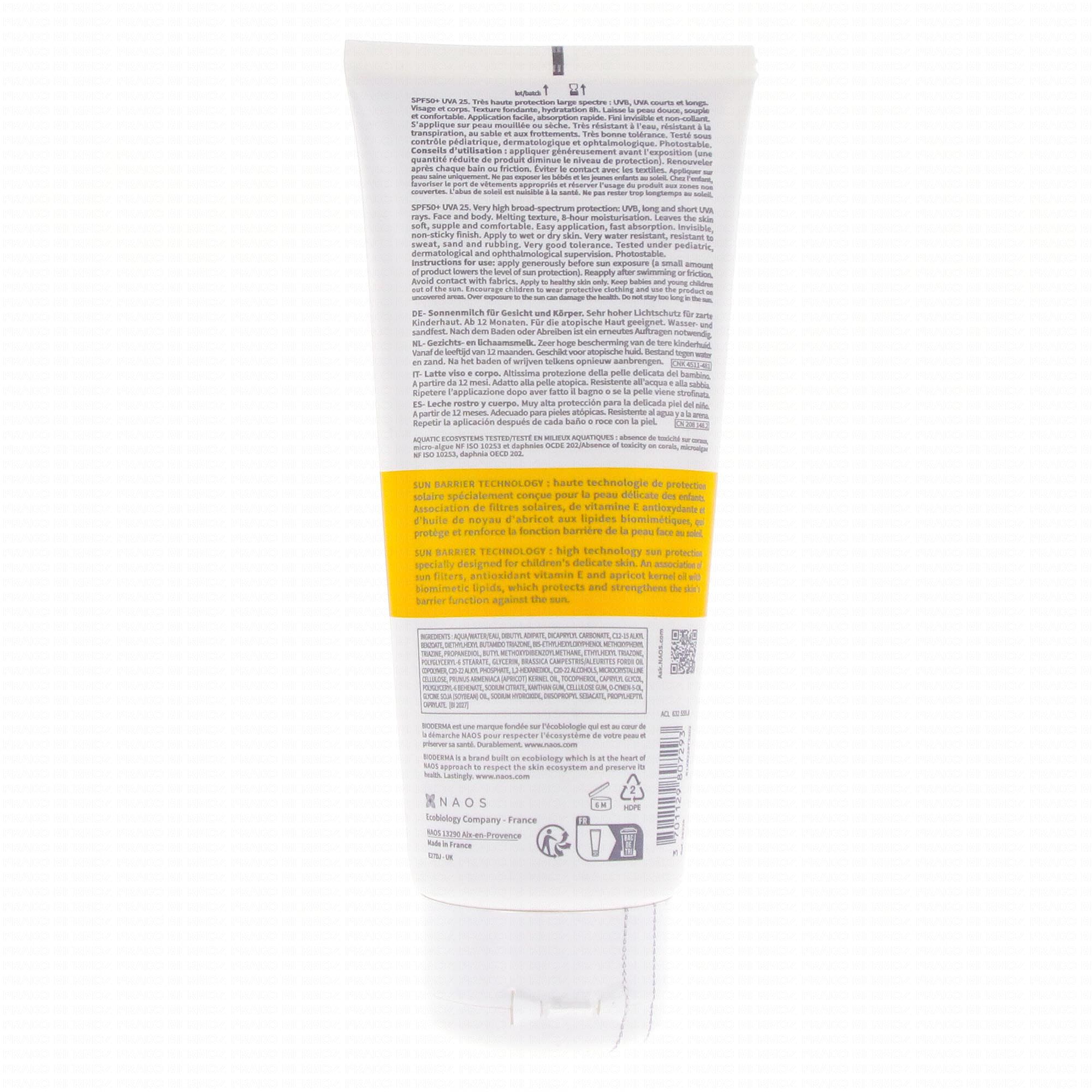 Photoderm PEDIATRICS Lait SPF50+ de BIODERMA est une crème solaire destinée spécifiquement à la peau sensible des enfants. Il est conçu pour les peaux à partir de 1 an et également approprié pour les peaux sensibles.