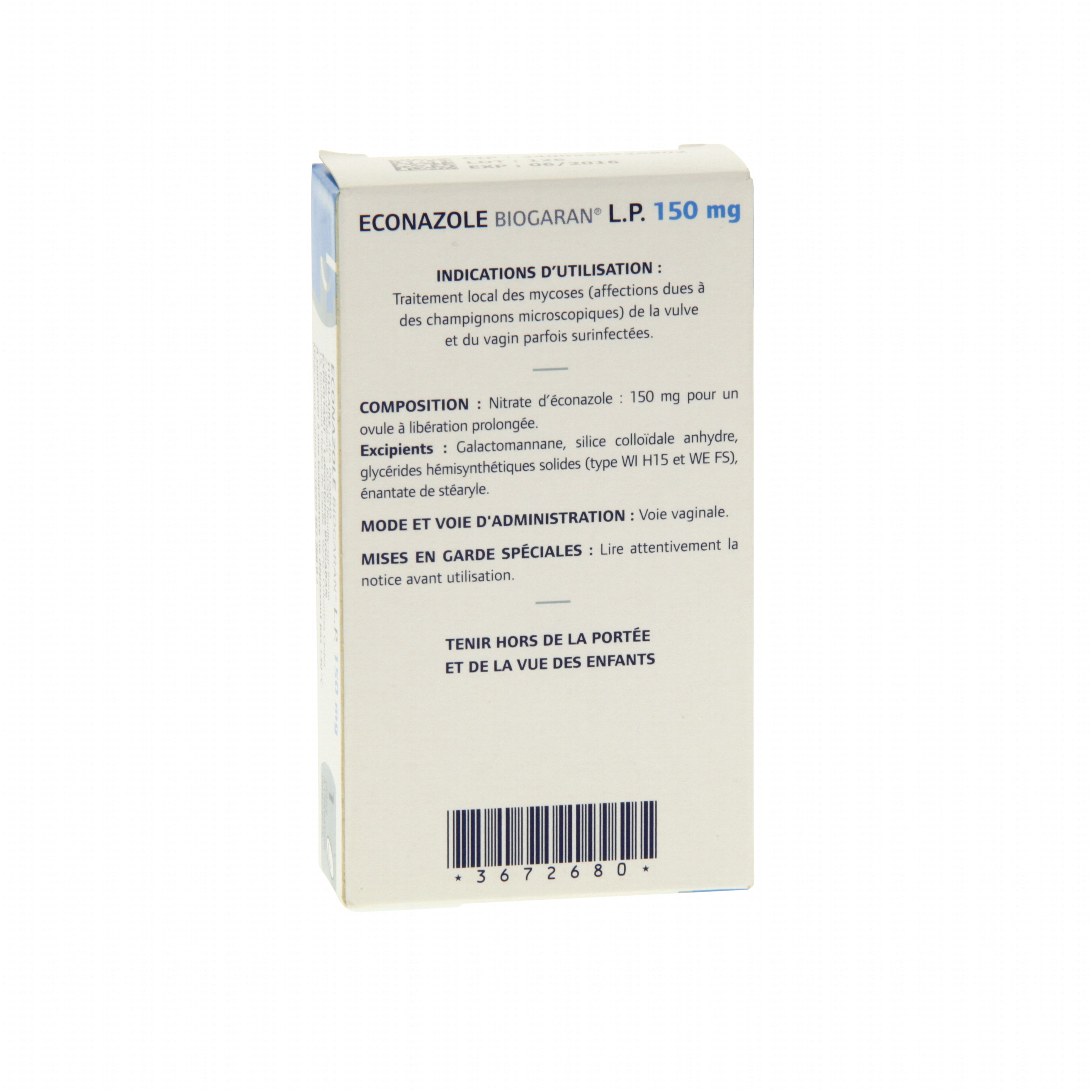 BIOGARAN Econazole biogaran l.p. 150 mg, plaquette thermoformée PVC polyéthylène de 1 ovule à libération prolongée