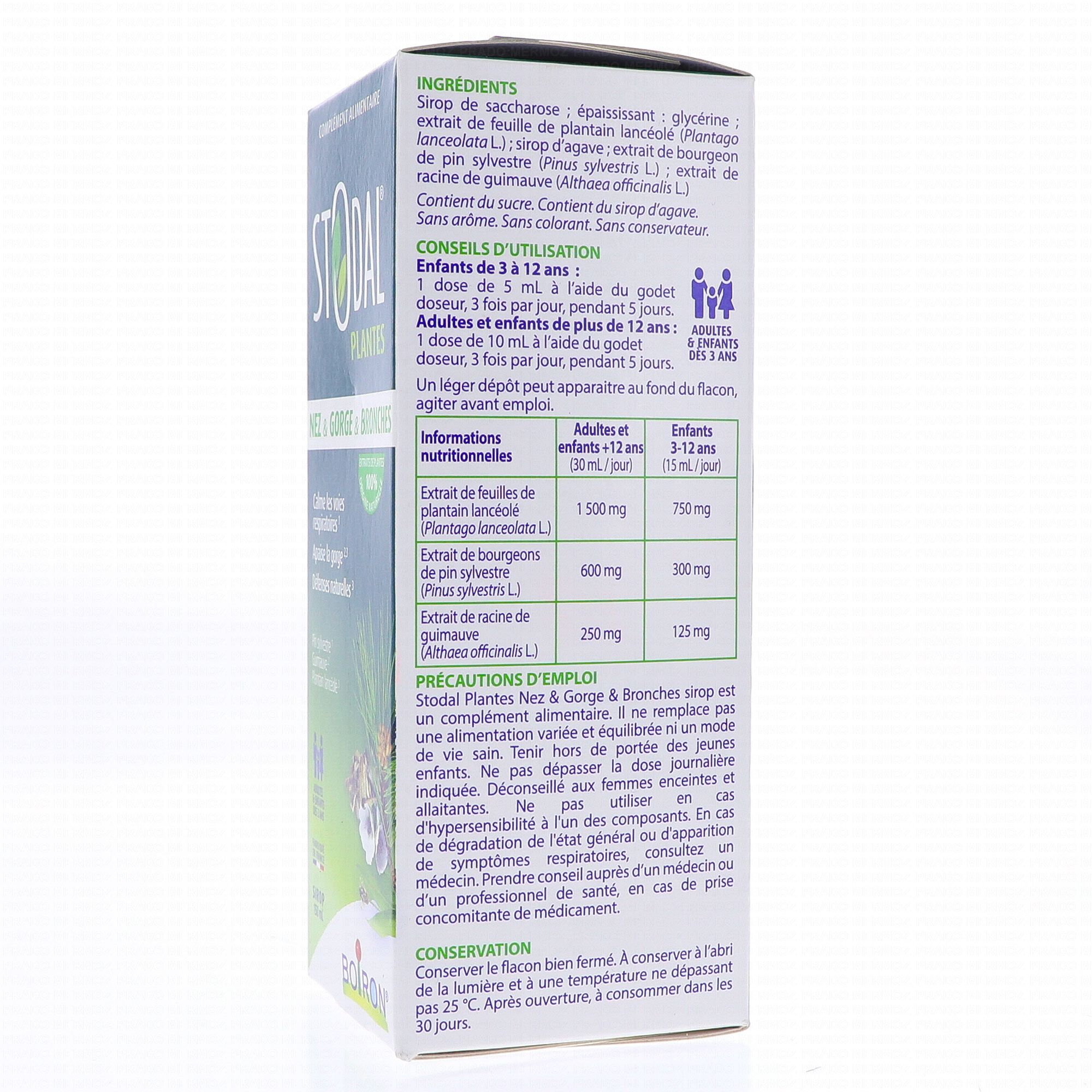 BOIRON Stodal - Sirop Plantes Nez & Gorge & Bronches 150ml contient les éléments suivants :