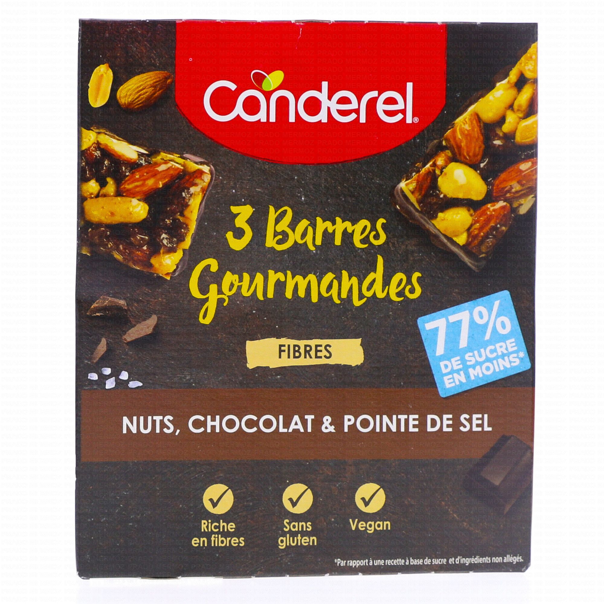 CANDEREL 3 Barres Gourmandes Nuts chocolat & pointe de sel contient les éléments suivants :