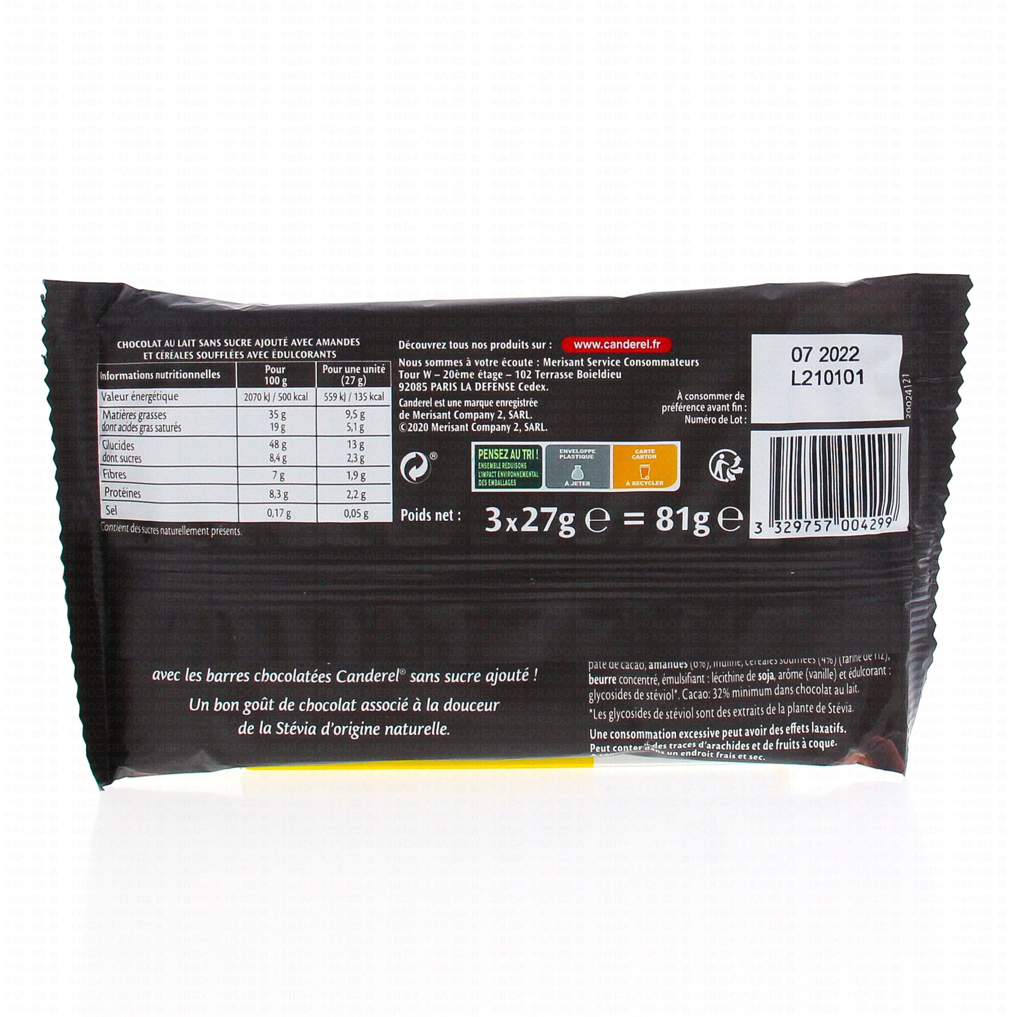 Allergies: Les personnes allergiques à l'un des ingrédients de la barre (lait, amandes, autres allergènes potentiels) doivent éviter sa consommation. Il est essentiel de consulter la liste complète des ingrédients sur l'emballage.