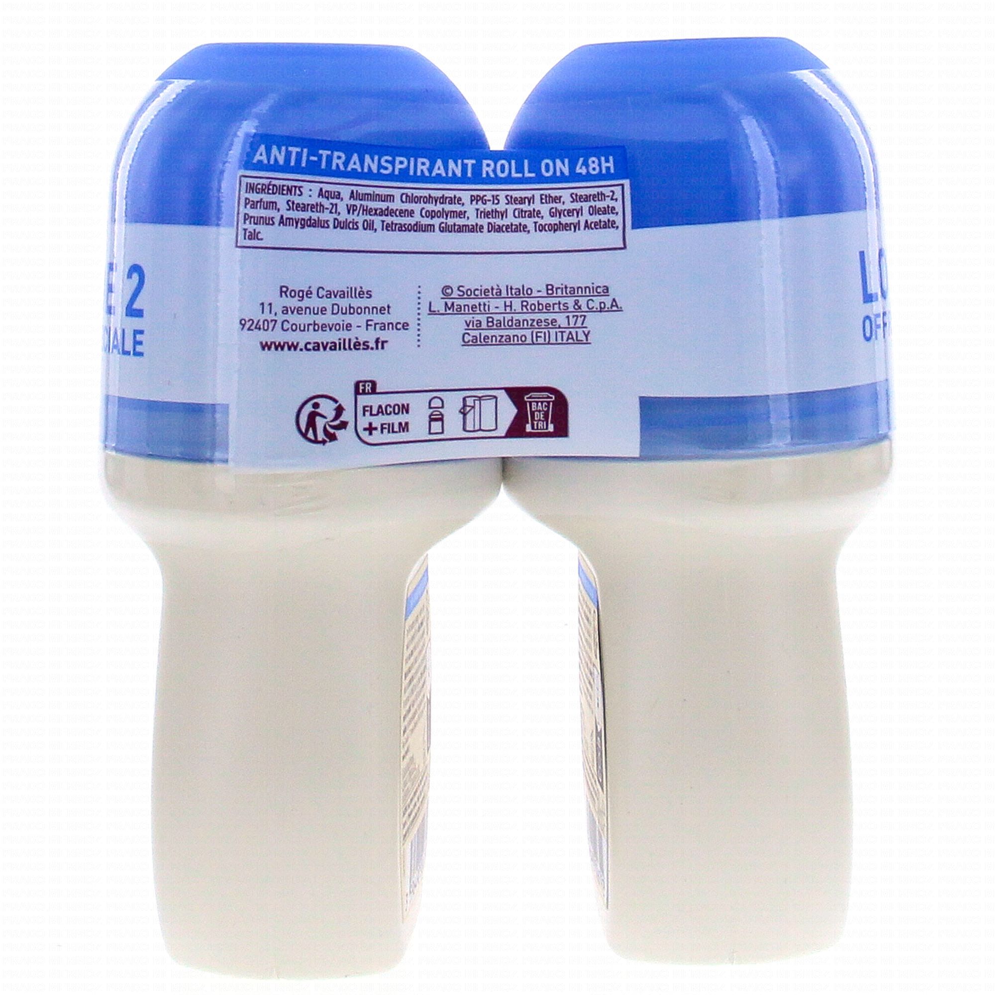 CAVAILLES Anti-transpirant Absorb+ 48 Roll On 50ml lot de 2
