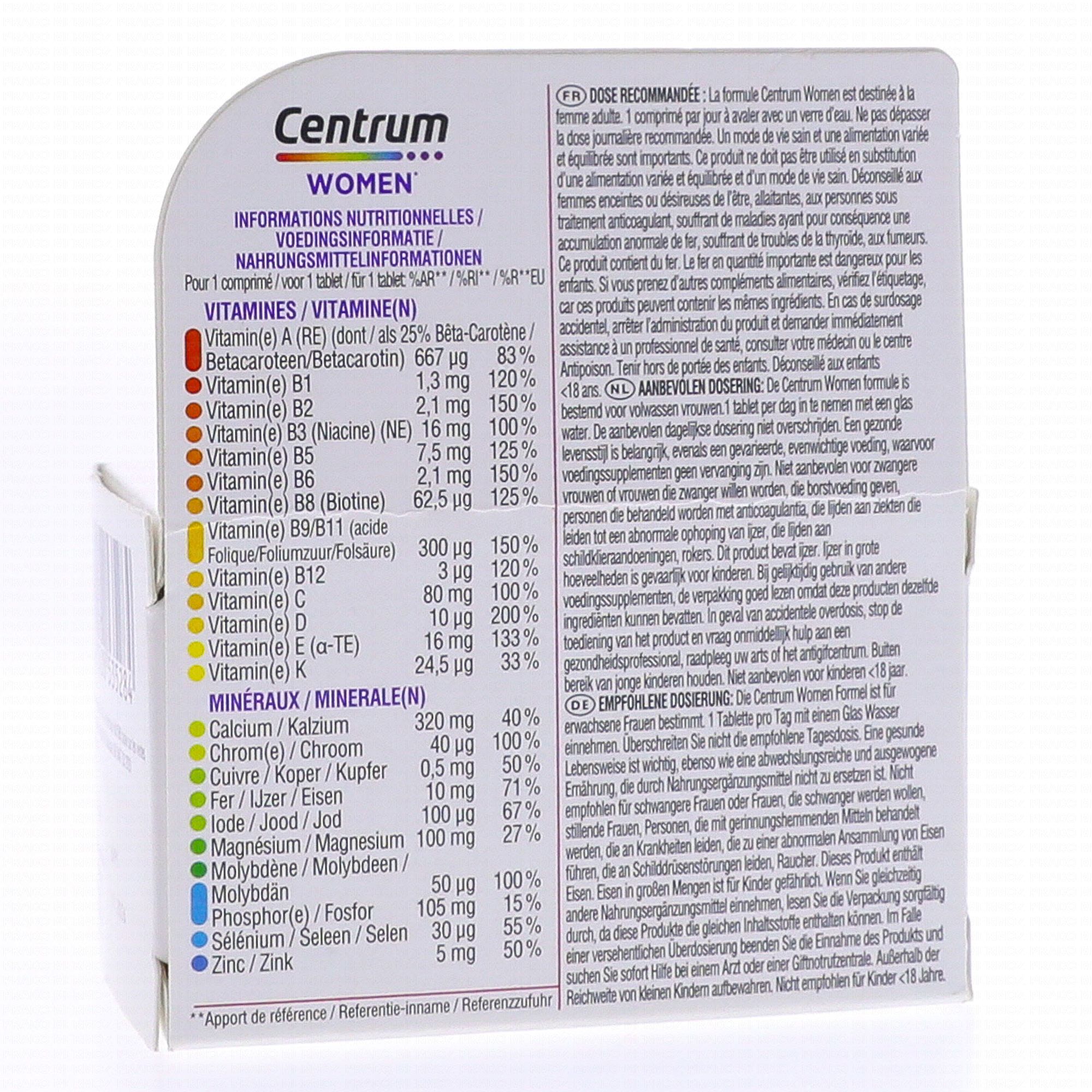 CENTRUM Women 30 comprimés contient les éléments suivants :