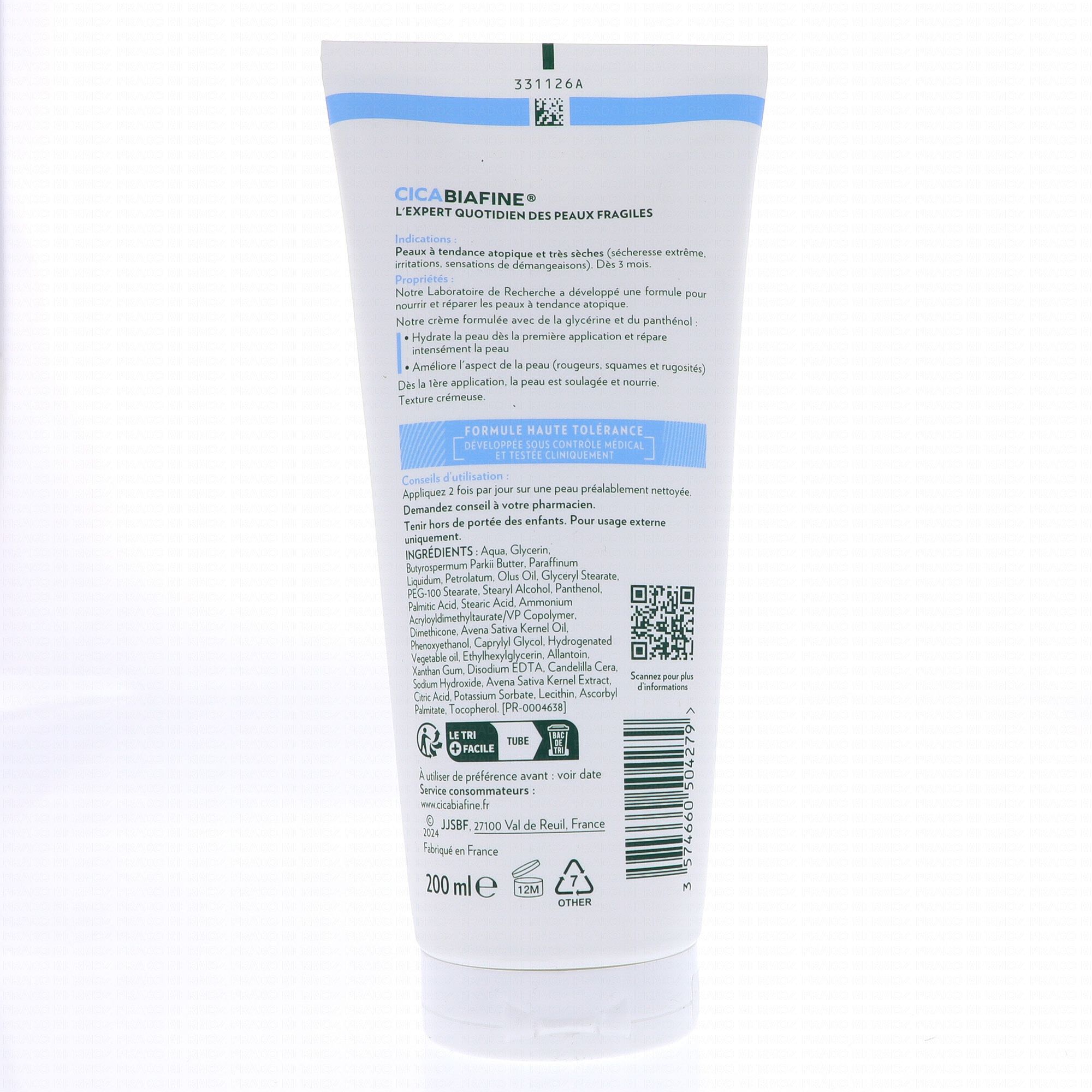 CICA BIAFINE Crème hydratante anti-irritations tube 200ml