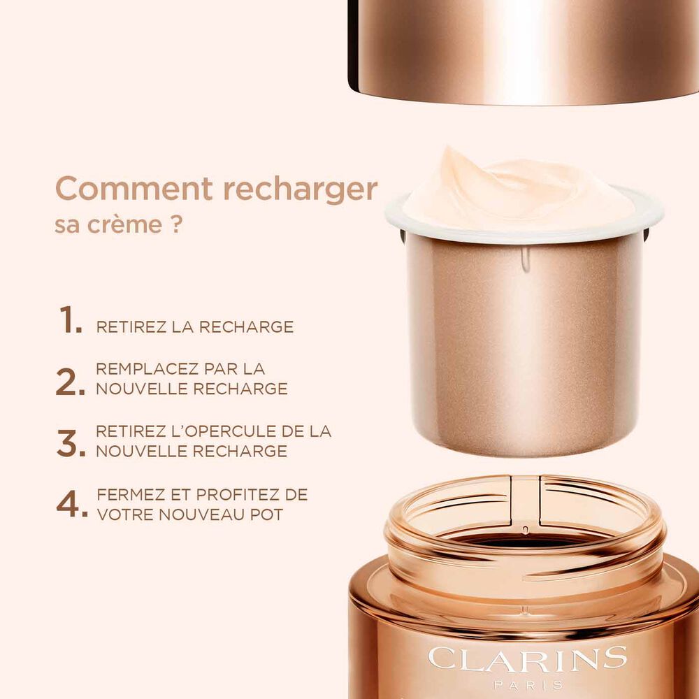 Ce nouveau packaging éco-conçu a nécessité plus de 2 ans de recherche et développement. Chaque recharge n'est pas seulement un choix, c'est un geste significatif en faveur du développement durable. En rechargeant 2 fois une crème, on contribue à diminuer de 84%**** notre empreinte environnementale. Vous économiserez 20€ sur le prix du produit, 58% des matériaux, dont 67% de verre, 42% de carton et 40% de plastique.