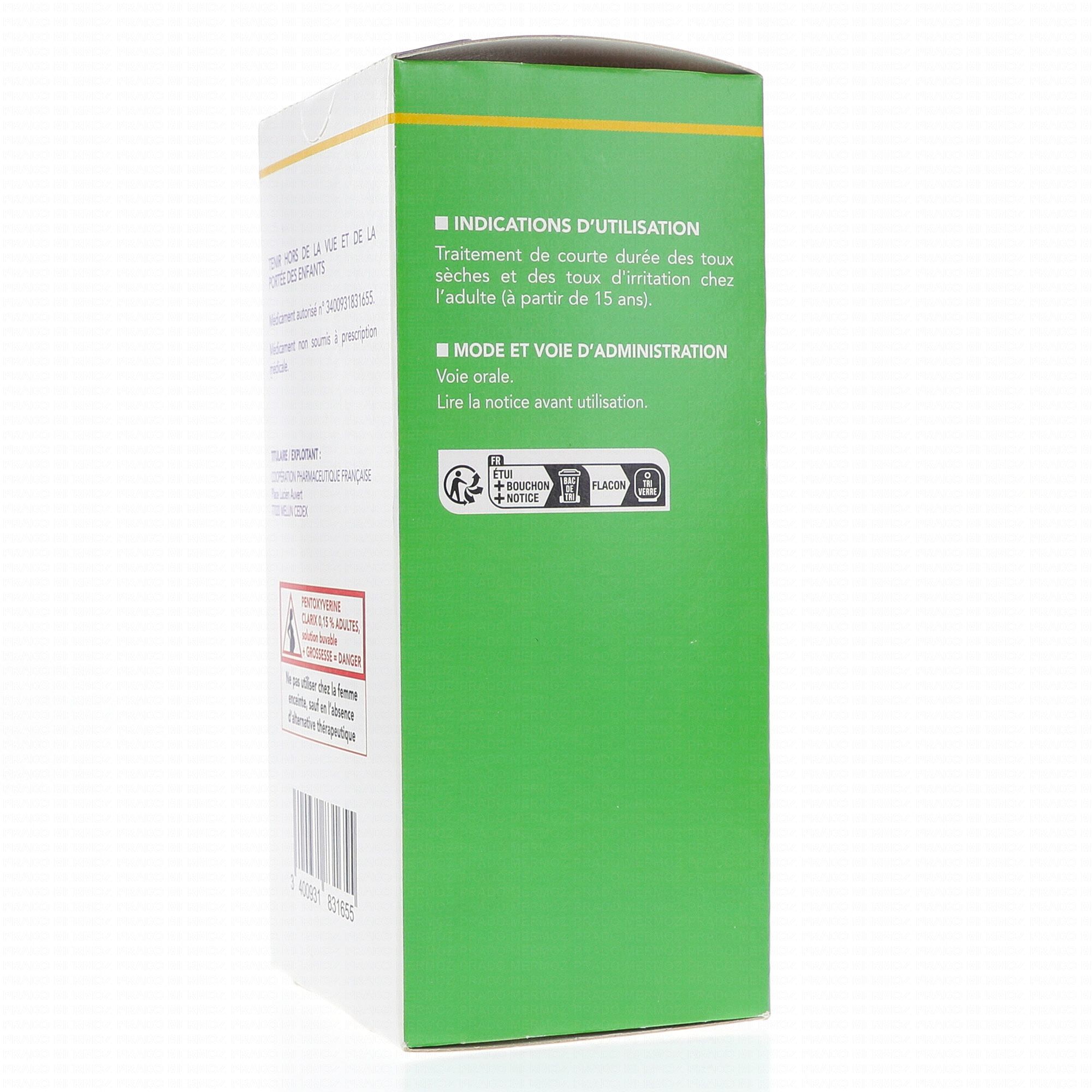CLARIX Sirop toux sèche Pentoxyverine 0,15% 200ml