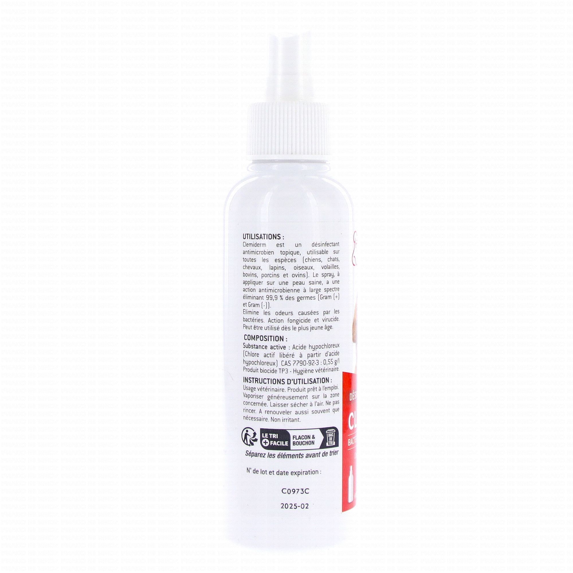 Le spray Clémiderm de chez CLEMENT THEKAN est à la fois bactéricide, fongicide et virucide. Il convient à tous les animaux et tue 99.9% des germes pour protéger votre compagnon à 4 pattes d'éventuelles maladies ou infections.