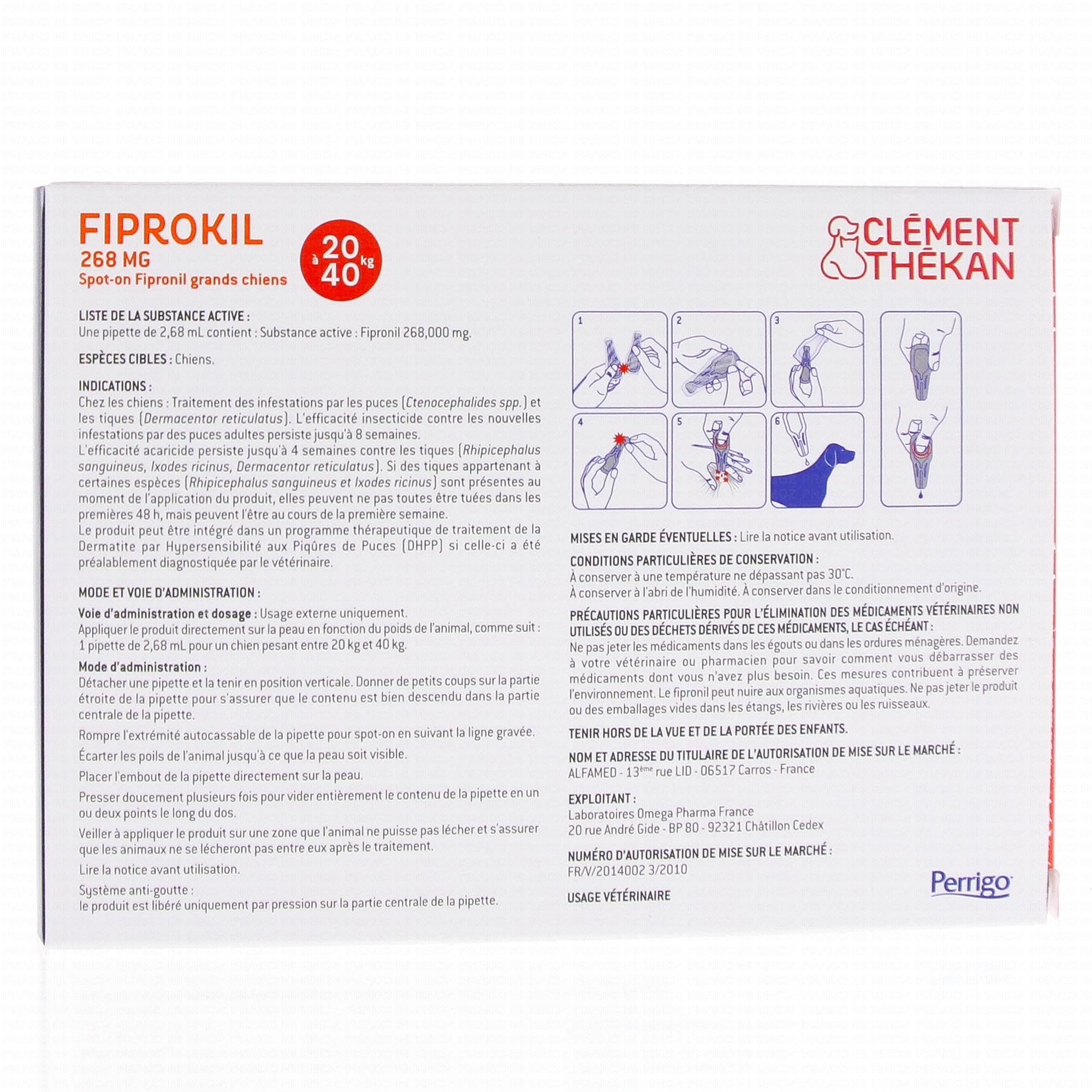 CLEMENT THEKAN Fiprokil chien 20 à 40kg 4 pipettes de 0.67ml