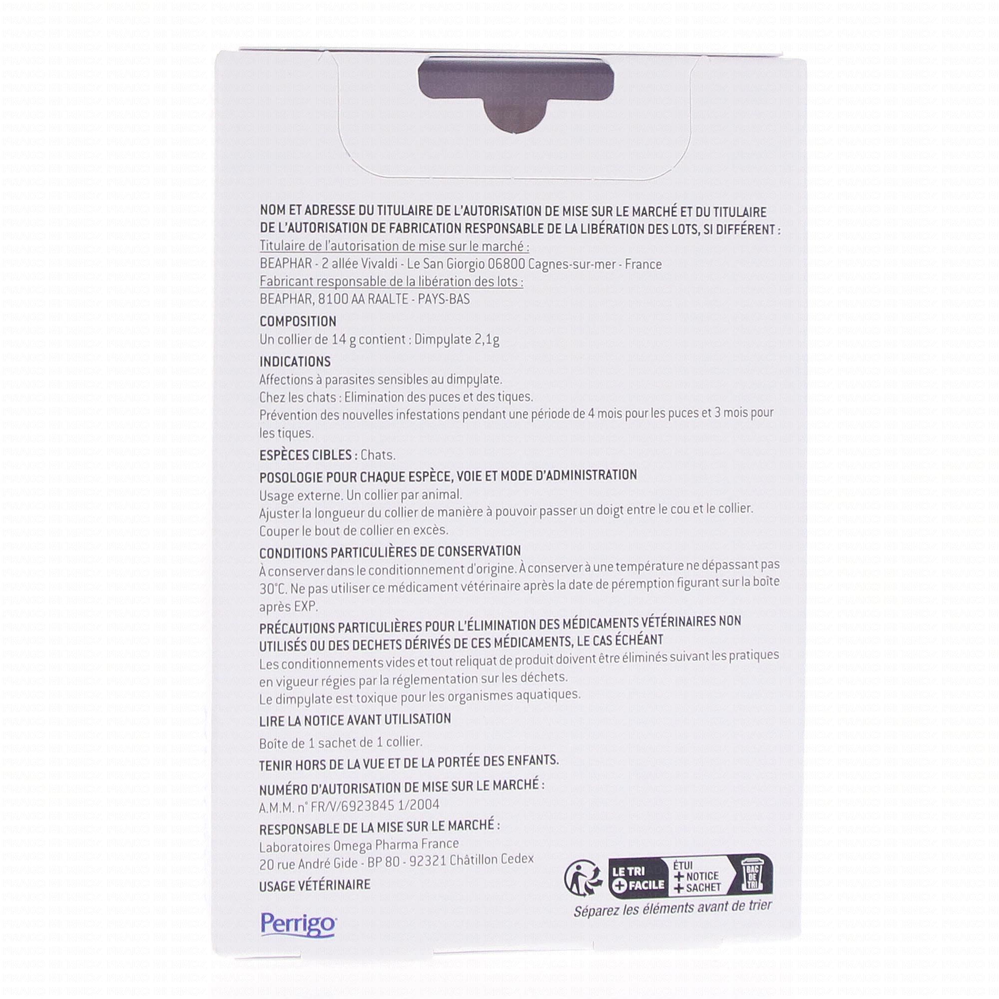 Collier anti parasitaire dimpylate pour chats. Elimine et prévient des infestations par puces et tiques