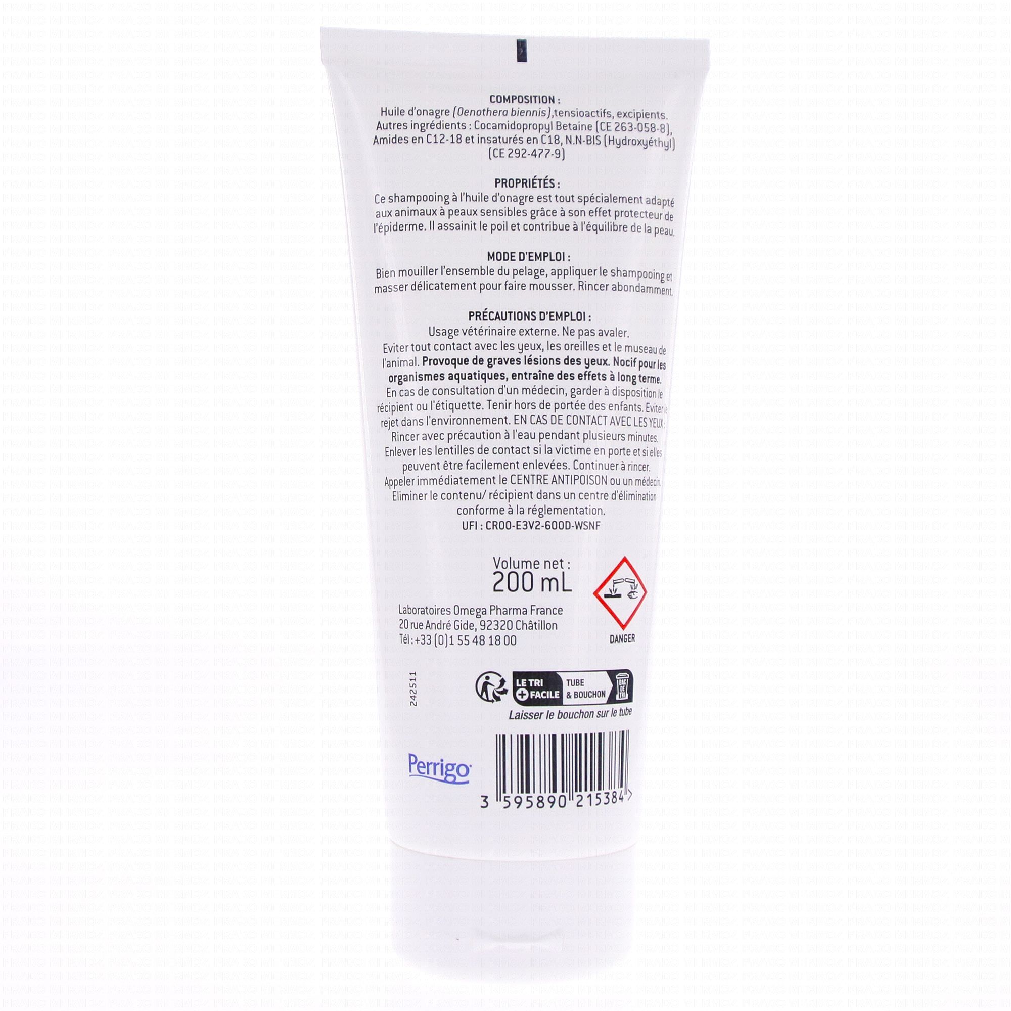 Ce shampooing à l'huile d'onagre est tout spécialement adaptés aux animaux à peaux sensibles grâce à sa base lavante ultra-douce et à son effet protecteur de l'épiderme.