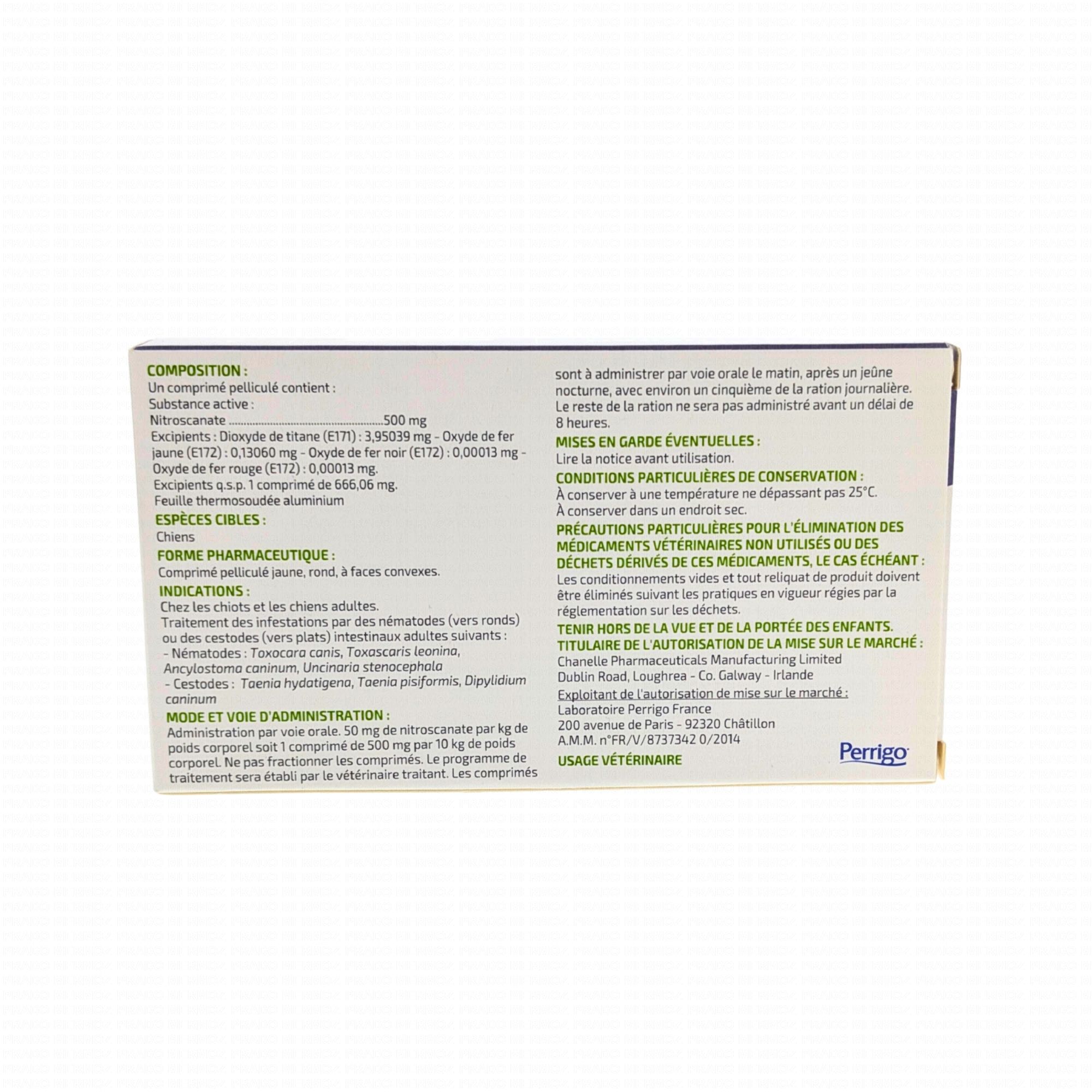 Conseillés en période de gestation et de croissance, les comprimés vermifuge polyvalent sont conseillés en cas d'helminthoses chez le chien : nématodes, cestodes Conditionnement : sous blister, étui carton.