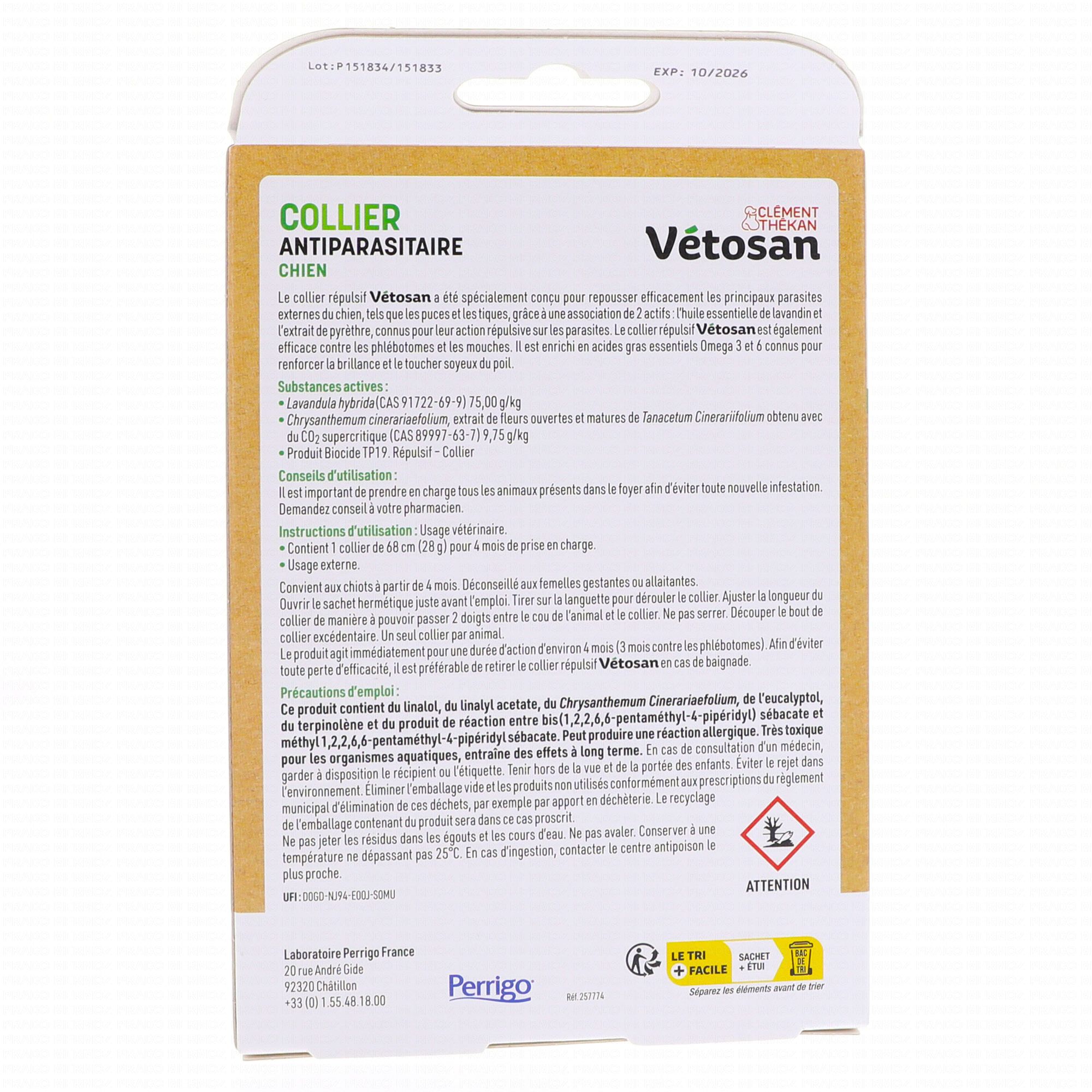 CLEMENT THEKAN Vétosan - Collier Répulsif pour chien 68cm