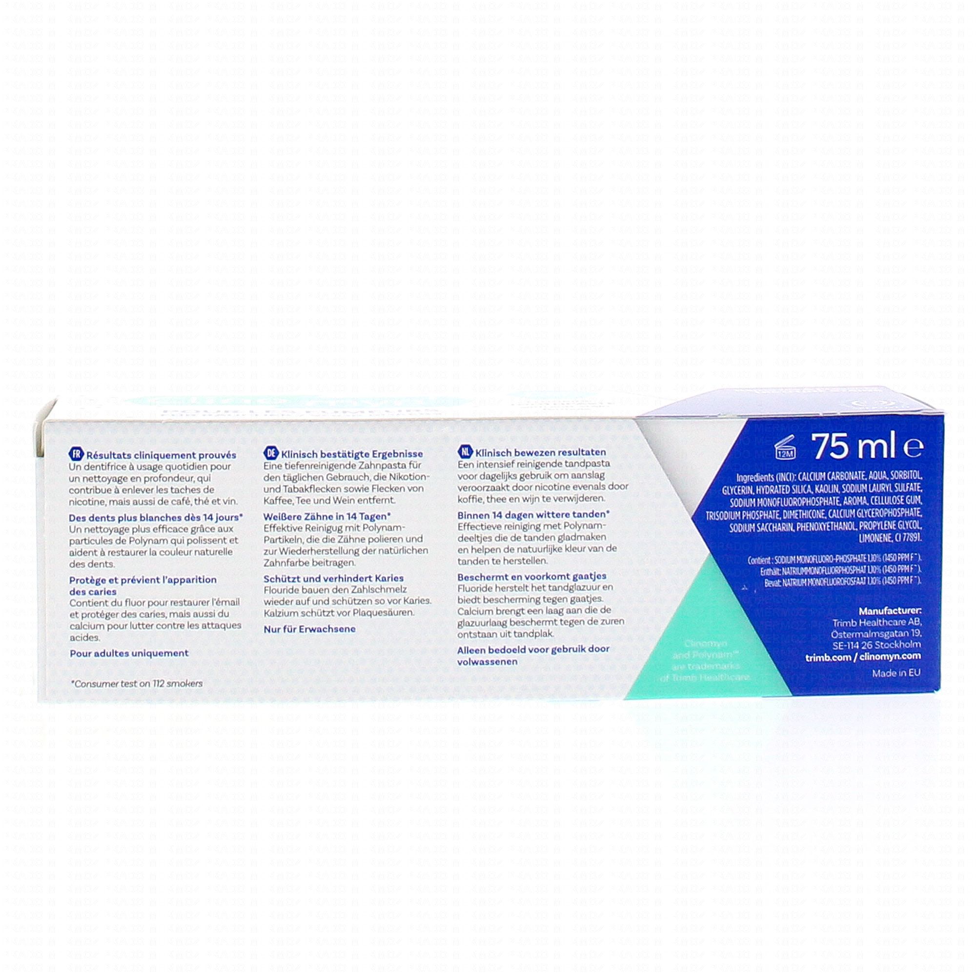 CLINOMYN Dentifrice pour les fumeurs menthe forte tube 75ml