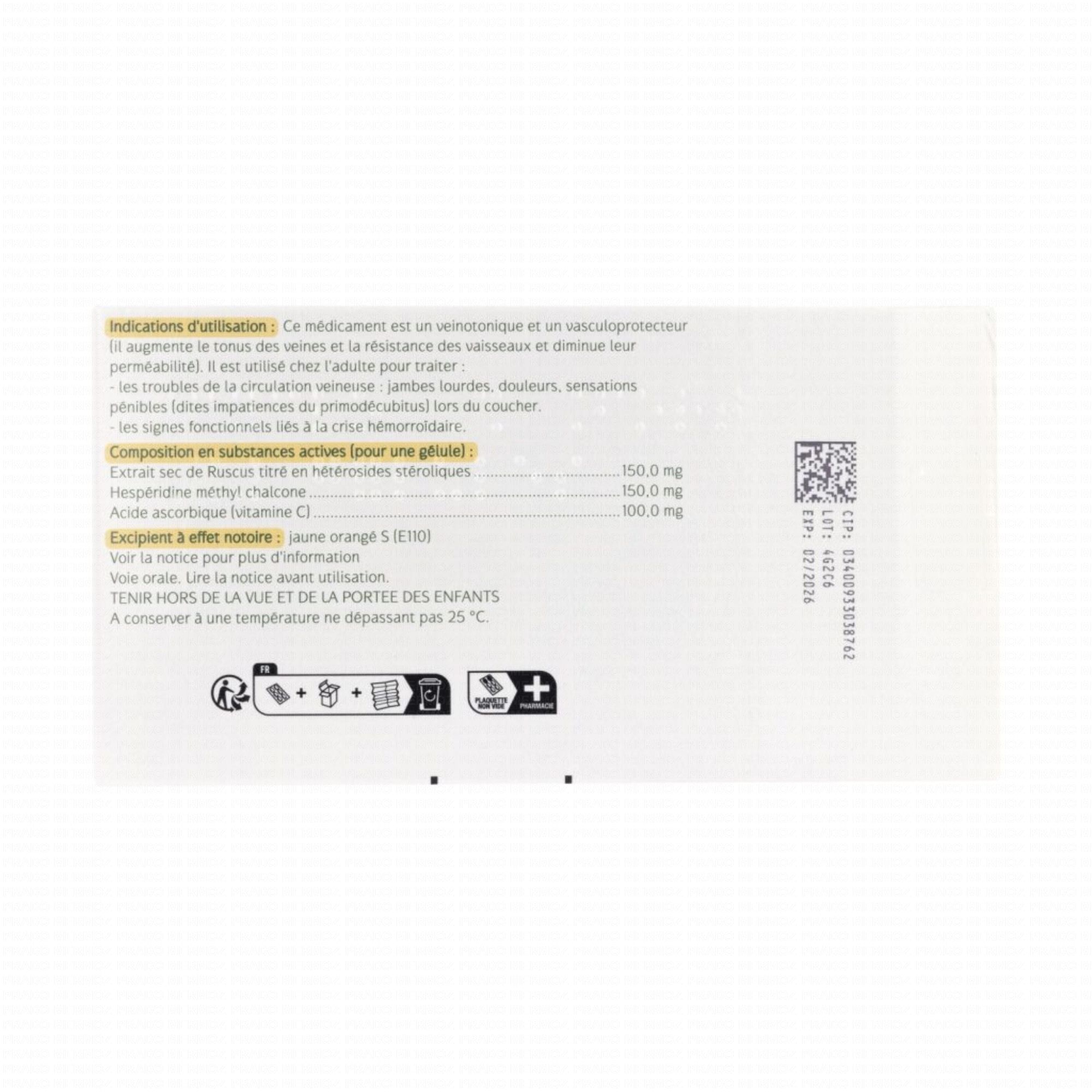 Extrait sec de ruscus titré en hétérosides stéroliques........................................................150,0 mg