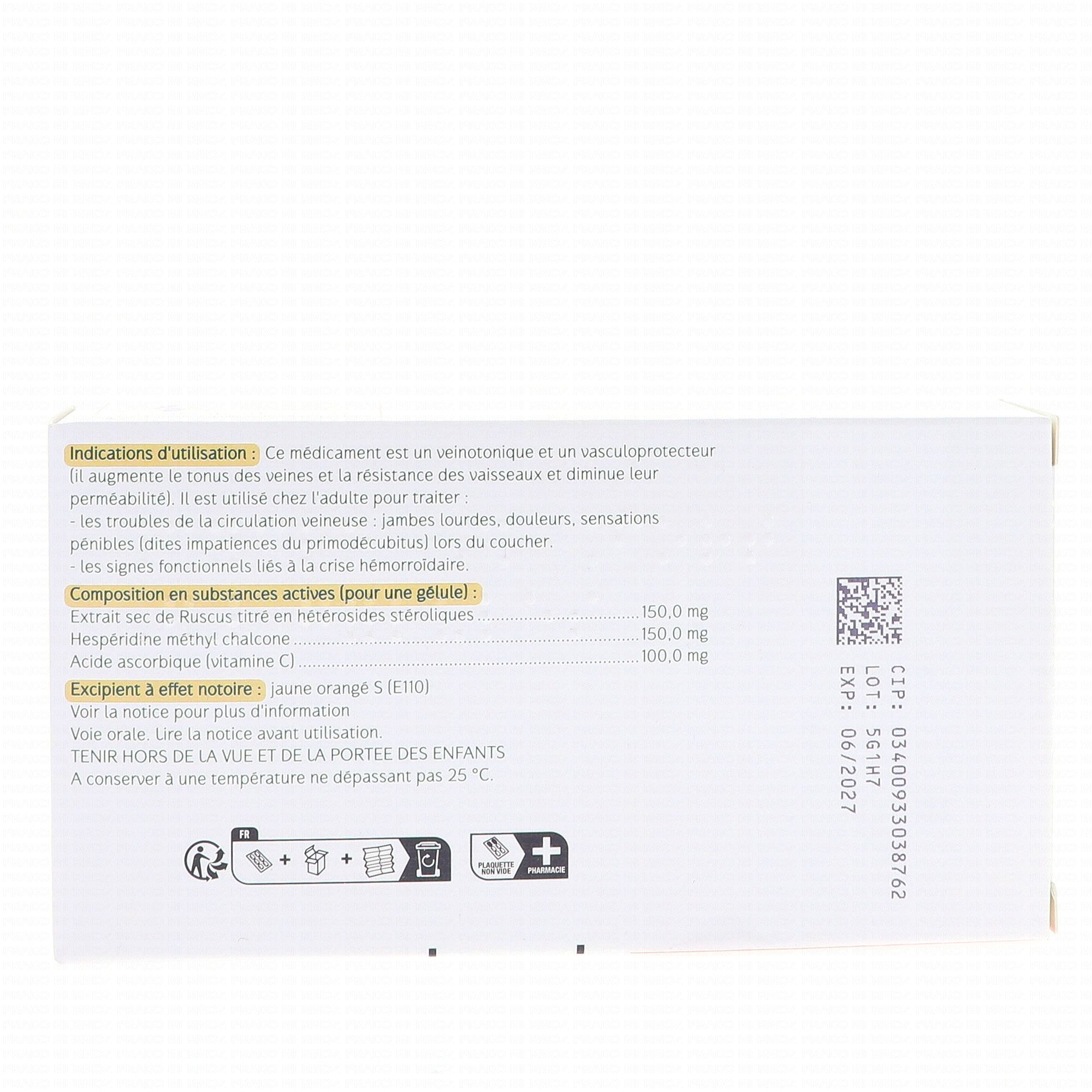 Extrait sec de ruscus titré en hétérosides stéroliques........................................................150,0 mg