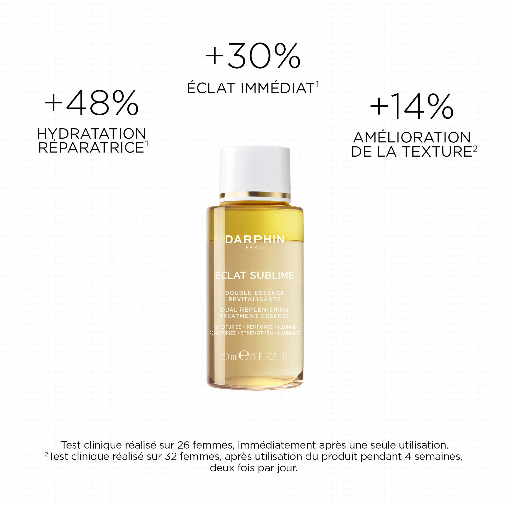 La Double Essence Revitalisante Éclat Sublime agit sur 3 dimensions de la peau: hydratation, éclat et grain de peau affiné.