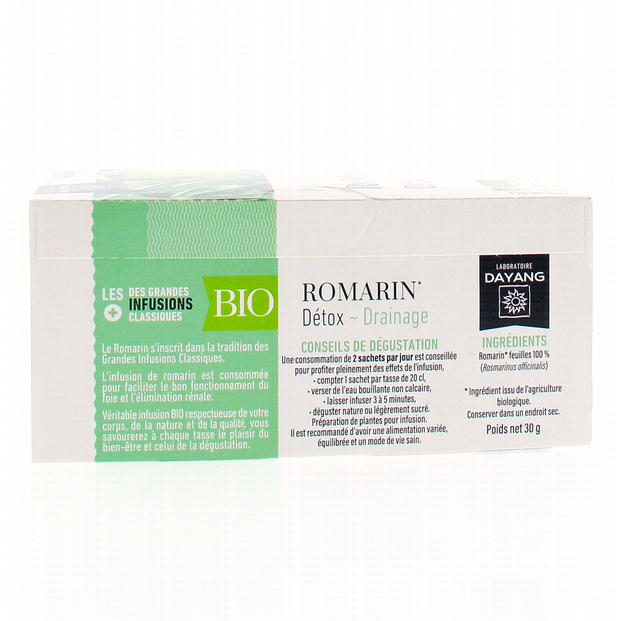 DAYANG Infusion bio romarin 20 sachets contient les éléments suivants :