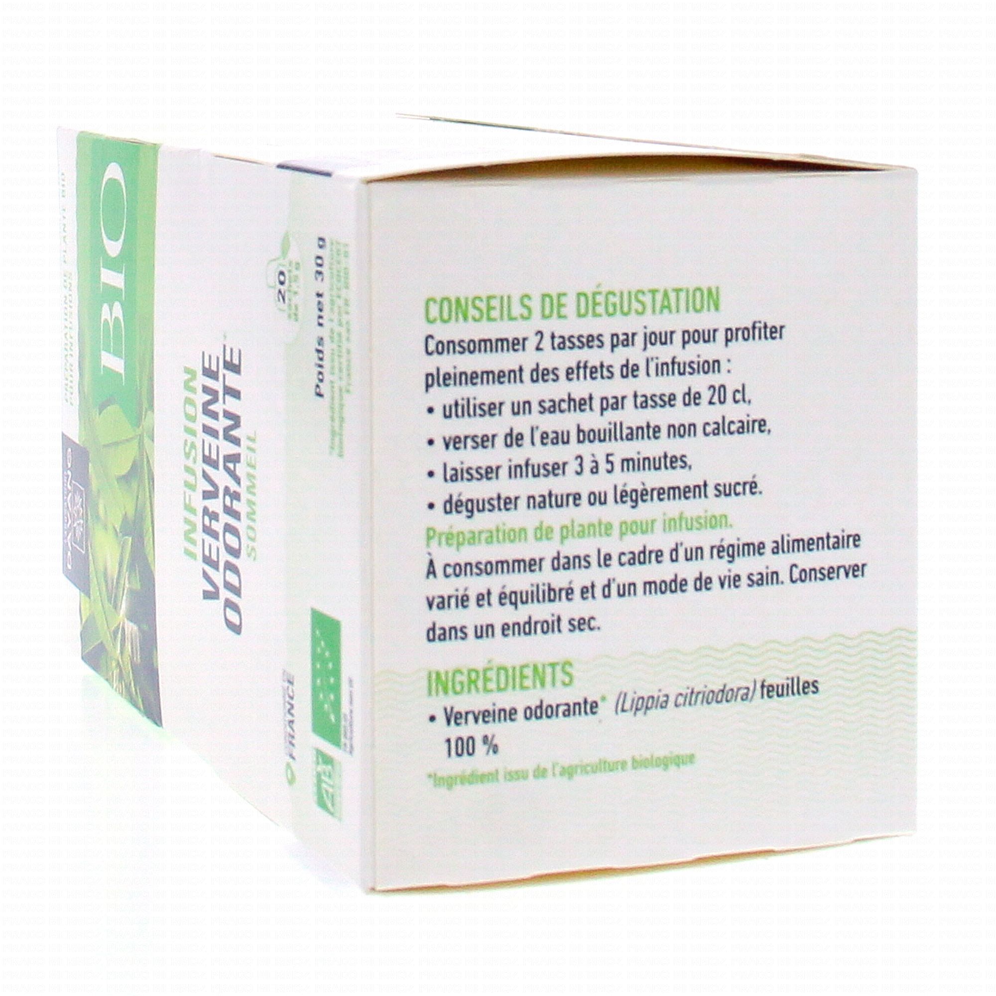 DAYANG Infusion bio verveine 20 sachets contient les éléments suivants :